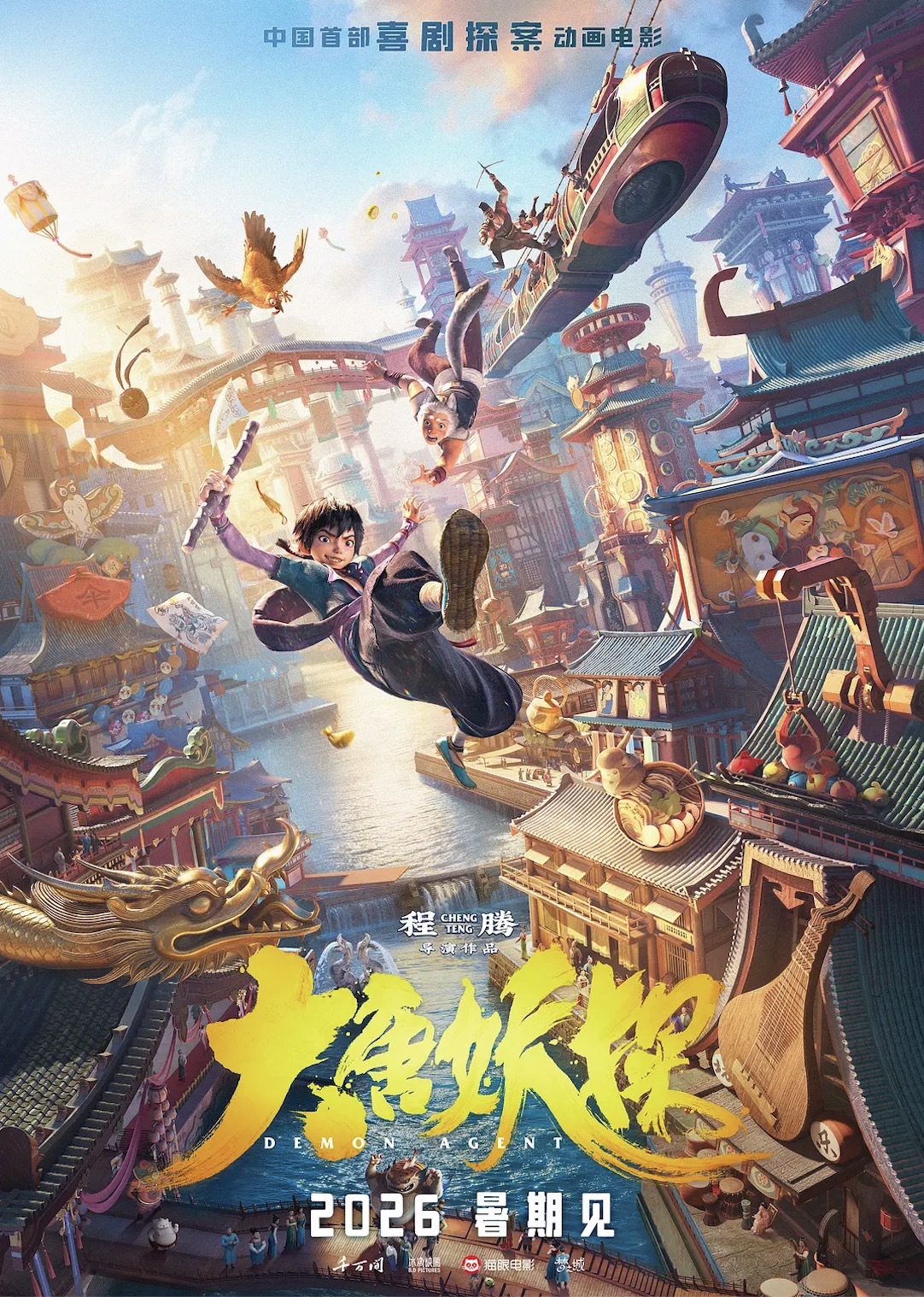 深圳千万间影业有限公司出品的动画电影《大唐妖探》,由《姜子牙》导演程腾执导,是国内首部探案喜剧动画。影片讲述梦想成为“长安第一神探”的天才少年与初出茅庐的狼妖捕快组队探案的奇幻故事。此前释出的预告片中,绚丽别致的机关大唐引发期待。