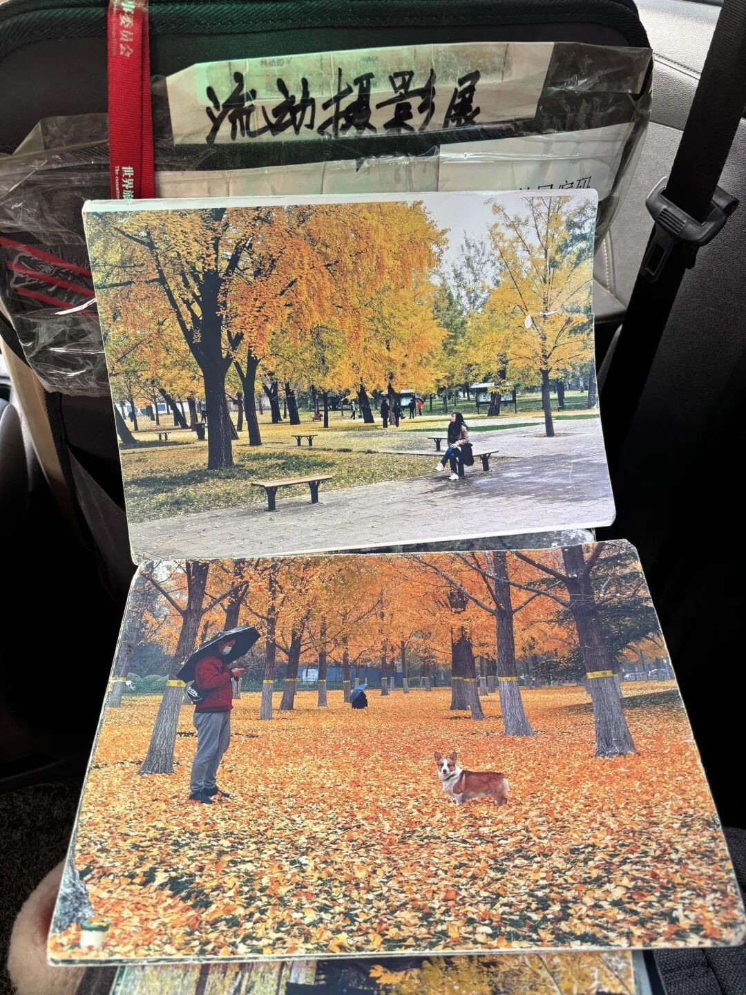 中文、英文、韩文、俄文,不同笔迹覆盖在照片背面,有的字迹被摩挲得模糊,又被后来人在旁边添了新的感想。这些来自陌生人的心声,和照片里的四季风光一起,构成了这辆网约车最特别的内饰。