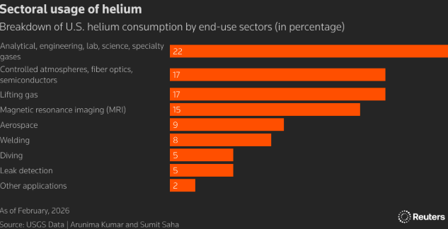Kapadia补充道,如果中断持续,中东地区以外的氦气生产商可能会受益。埃克森美孚是卡塔尔以外最大的氦气生产商,而总部位于加拿大的North American Helium以及较小的开发商如Helix Exploration和Blue Star Helium,也可能会看到更强劲的需求。