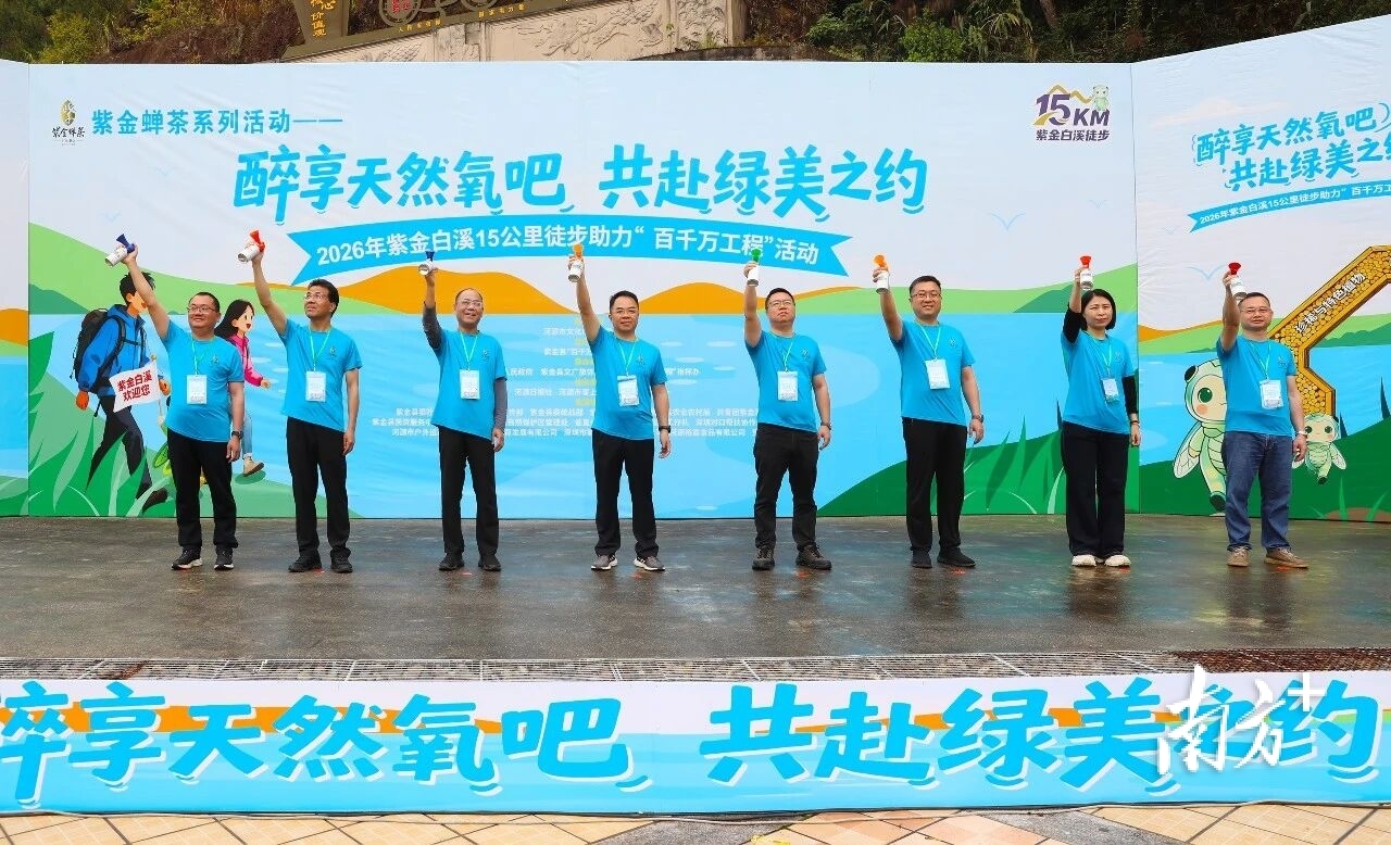 3月21日,2026年紫金白溪15公里徒步助力“百千万工程”活动在广东紫金白溪省级自然保护区举行,吸引了广州、东莞、梅州等近千名徒步爱好者共赴春天之约。