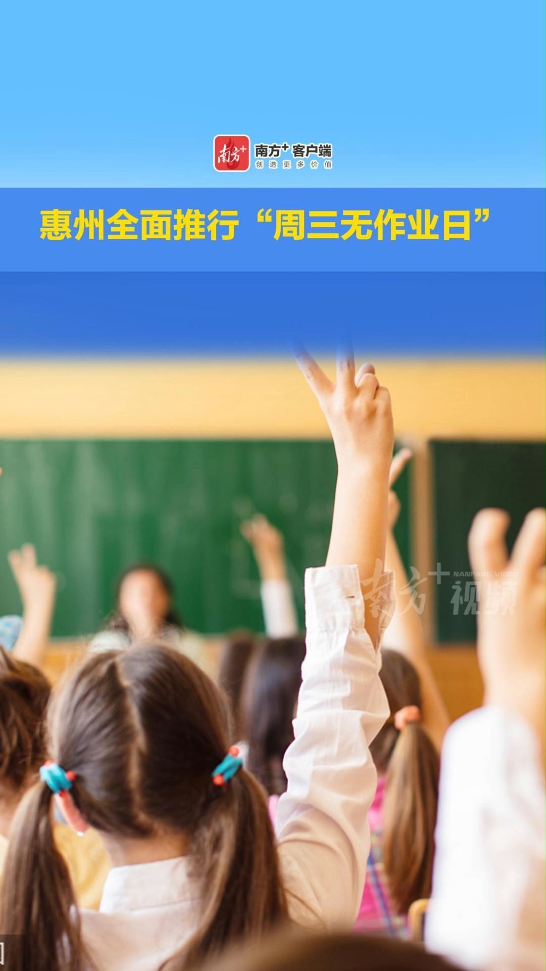 近日,惠州市教育局发布通知,从2026年春季学期开学起,全面推行“周三无作业日”制度。详情>>