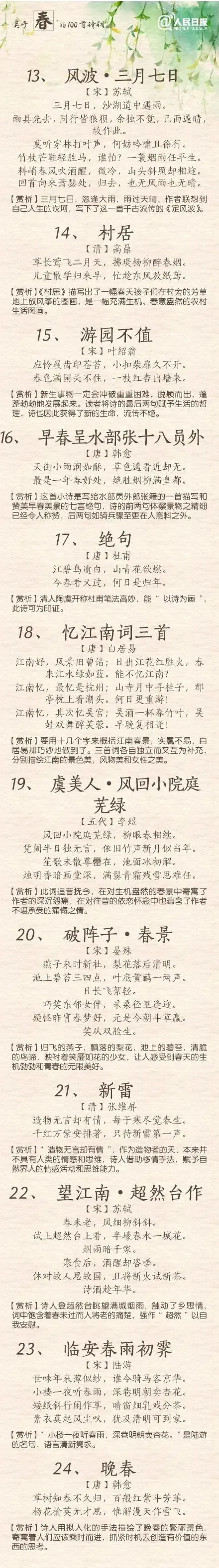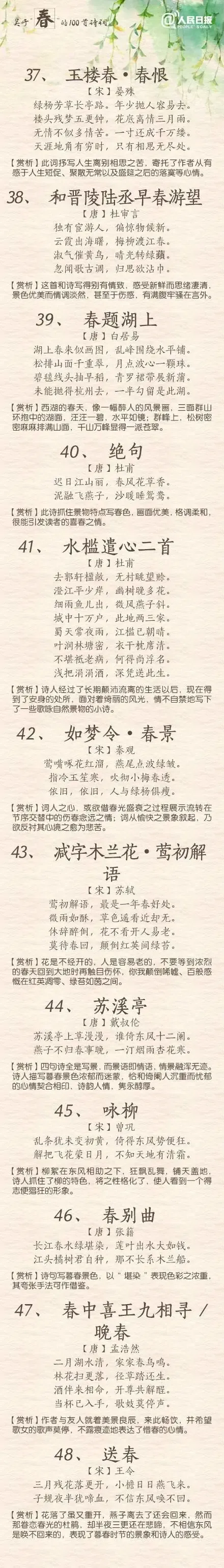 春风十里不如诗中寻春人民日报精选了100首经典之作快和孩子一起读起来在诗词中品味春天来源:人民日报 免责声明:本文由南方+客户端“南方号”入驻单位发布,不代表“南方+”的观点和立场。 订阅后可查看全文(剩余80%)
