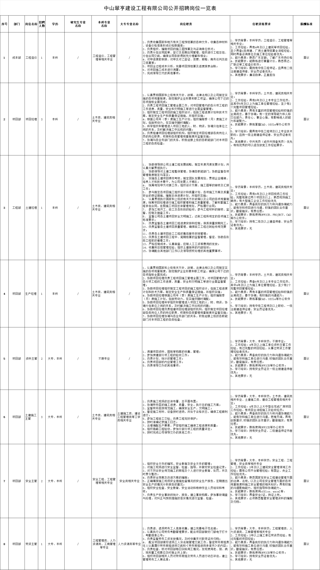 应聘人员根据资格条件和要求报名。应聘人员可通过“中山翠亨集团有限公司”和“翠亨建工”微信公众号发布的二维码报名,填写《应聘报名表》,连同本人身份证(报考须使用有效期内的二代身份证,报名与考试时使用的身份证必须一致)、学历证书及相关证明(请提供学历证明或学信网打印的证明)、资格证书(请提供相关官网站证明信息)等材料扫描件,一并提交。也可通过智联招聘搜索公司岗位投递,但仍需通过以上二维码提交报名信息,方视为报名成功。