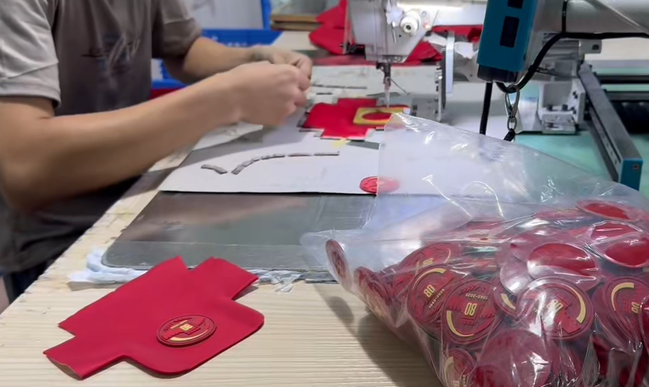 在色彩上,团队从历史庄重感和使用的功能性出发,选取城墙红、橄榄绿与丰饶金作为主色调,既与观礼座椅相协调又美观时尚。考虑防水和环保需要,团队筛选定制尼龙材质,创新环保复合工艺,采用3D立体裁切和柔性骨架结构,突破Logo高精度还原技术难题,确保观礼包在阅兵环境中的最佳性能与展示效果。