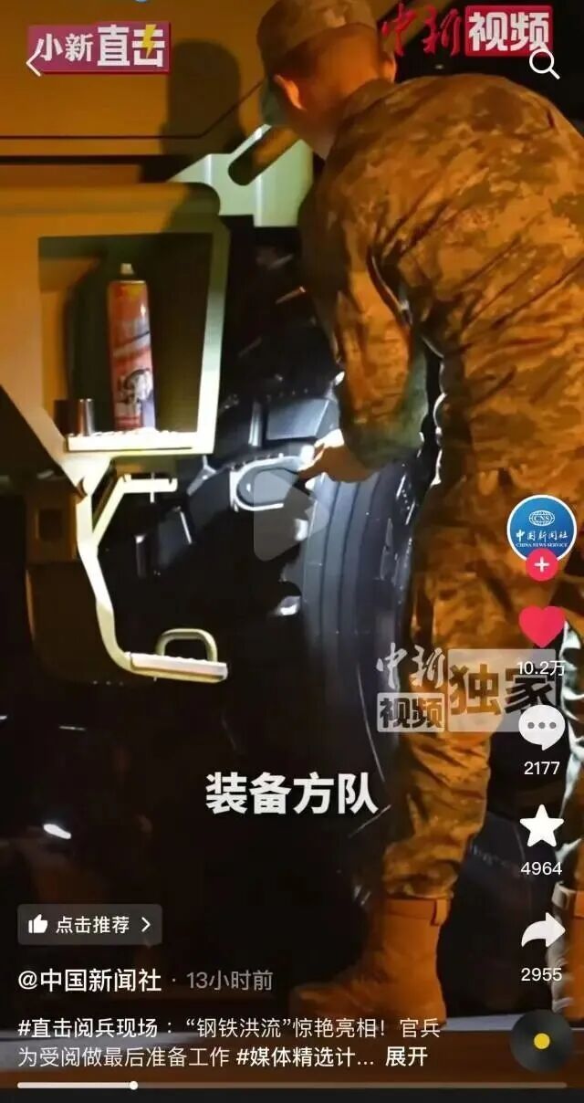 这源于一个视频——在阅兵仪式前期准备过程中,装备维护专班正在用泡沫光亮剂,仔细护理每一辆车的轮胎。