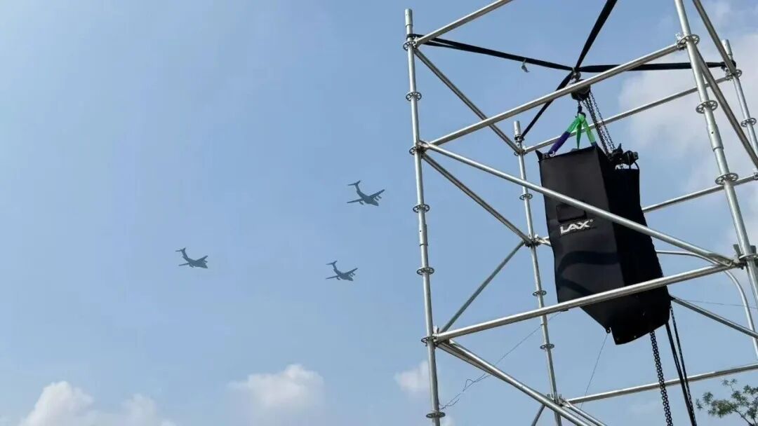 在长达1公里的阅兵沿线,共设置了13个音响点位。它们组成一个完整的扩声网络。系统由1个总控中心和2个分控点协同运作,确保声音稳定、同步。