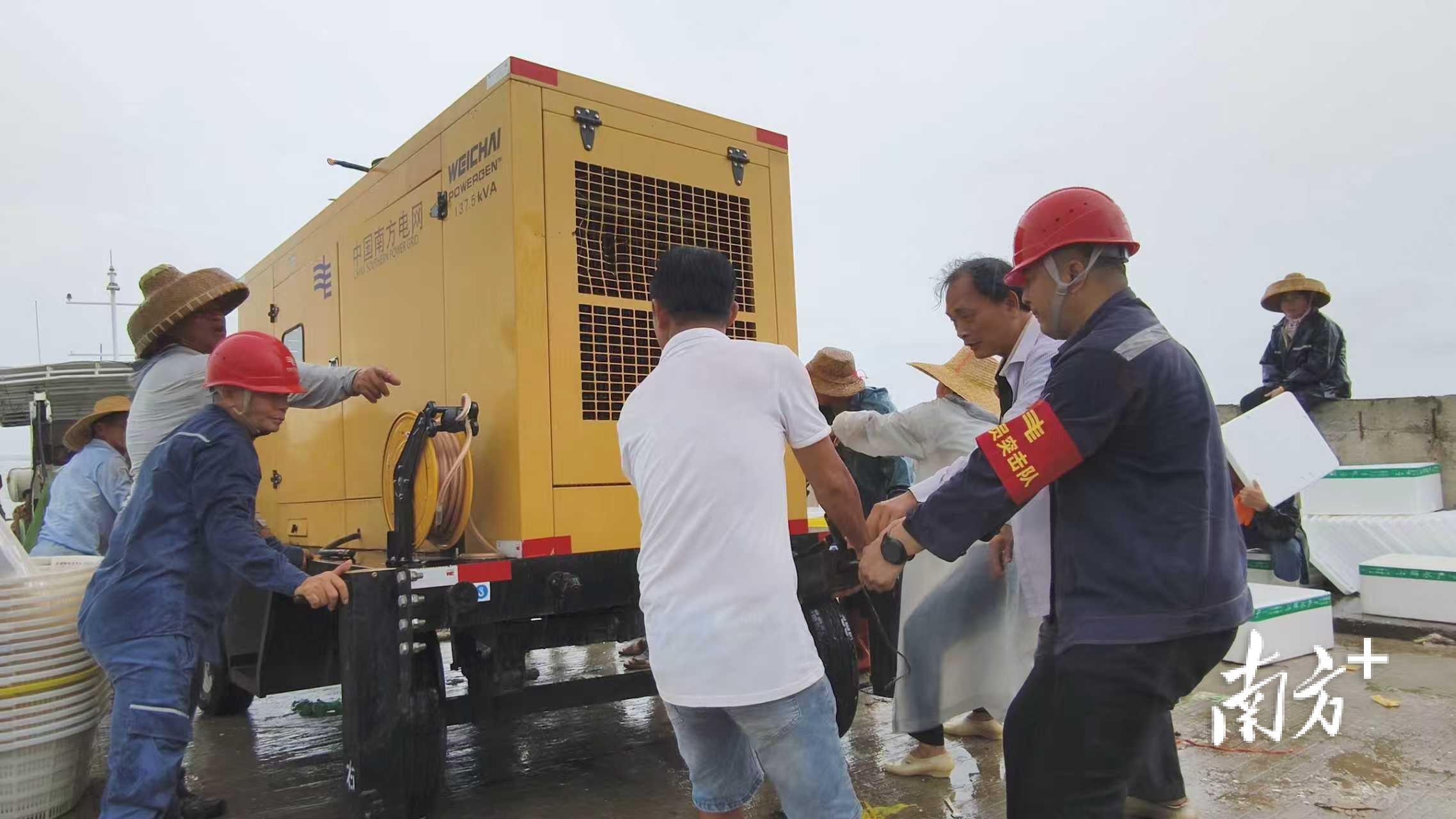船舶缓缓离开码头,向着六极岛方向驶去,黄国军和陈永腾站在船上护送着发电机组,眺望着守护的这片岛屿掩不住眼中的欣慰。“发电机来了。”船舶一靠岸,岛民脸上止不住的开心。面对自然灾害,湛江徐闻供电局充分发挥党群齐心、企民协作的优势,最大限度地保障人民群众的生命财产安全和基本生活需求。