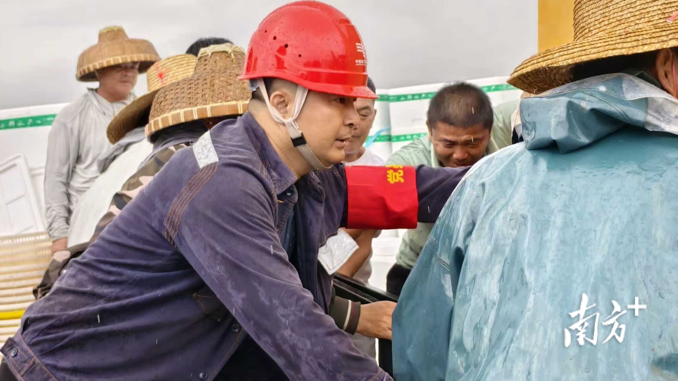 乌云密布,大雨欲来,锦和供电所党支部书记黄国军及老党员陈永腾把发电机组拖到码头后和村干部冒着小雨,聚集在码头附近,等待船舶靠岸。船舶靠岸后把“大家伙”推上船也是艰巨的任务,要把控着合适的方向才能推到合适的位置,“一二三,推!一二三,推!”雨越下越大,所有人员没有退缩,黄国军的指挥声与风雨声交织在一起,岸上的渔民群众也参与到其中,大家齐心协力,一点点地将发电机组往船上移动。