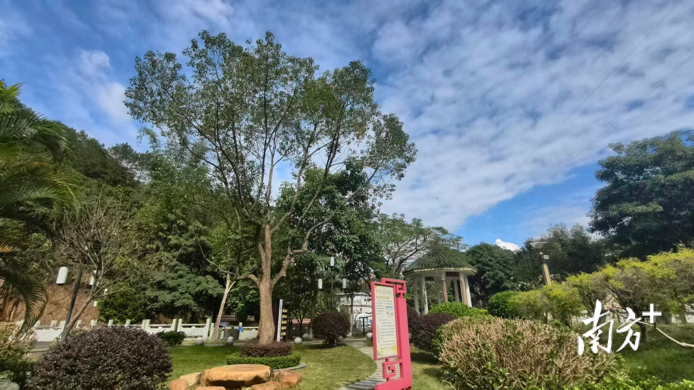 在信宜市大成镇双乐村的公园里,有一棵以人名命名的樟树——“健燕树”,四季常青。