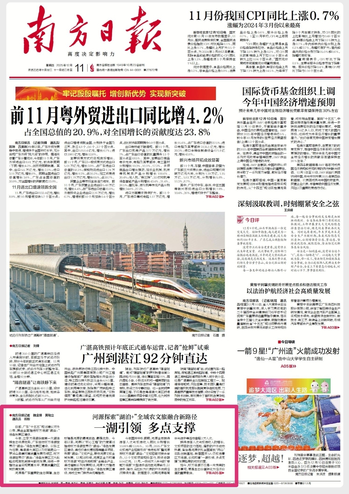 南方日报头版 | 河源:一湖引领 多点支撑,探索“湖泊+”全域农文旅融合新路径