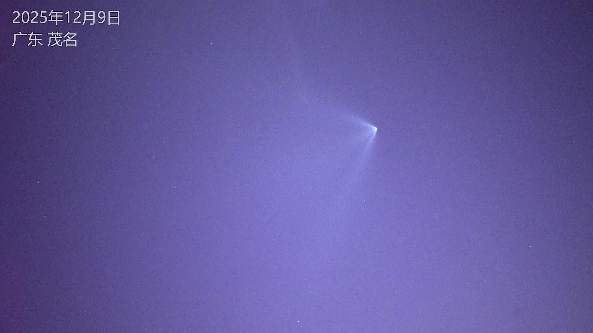 在黎明前的高空阳光照射下,火箭二级的尾焰中的水汽显得非常耀眼,这是只有火箭在黎明前或黄昏后才能见到的特殊人造大气现象。如果在发射地点附近,观测者们可以看到更加完整的“火箭夜光云”奇观。