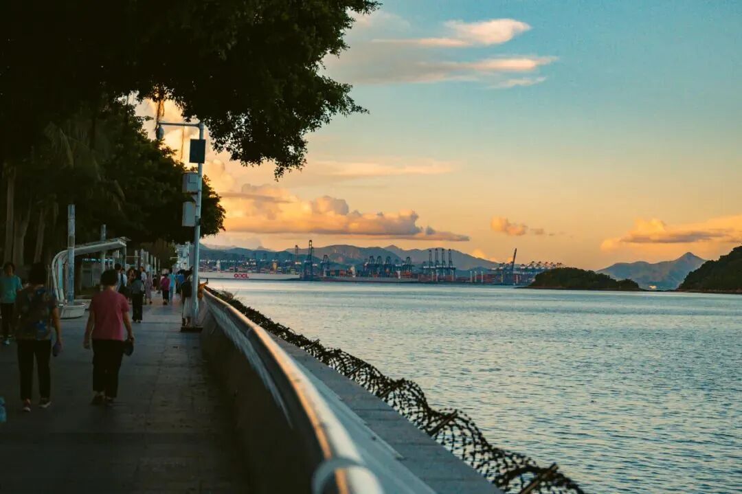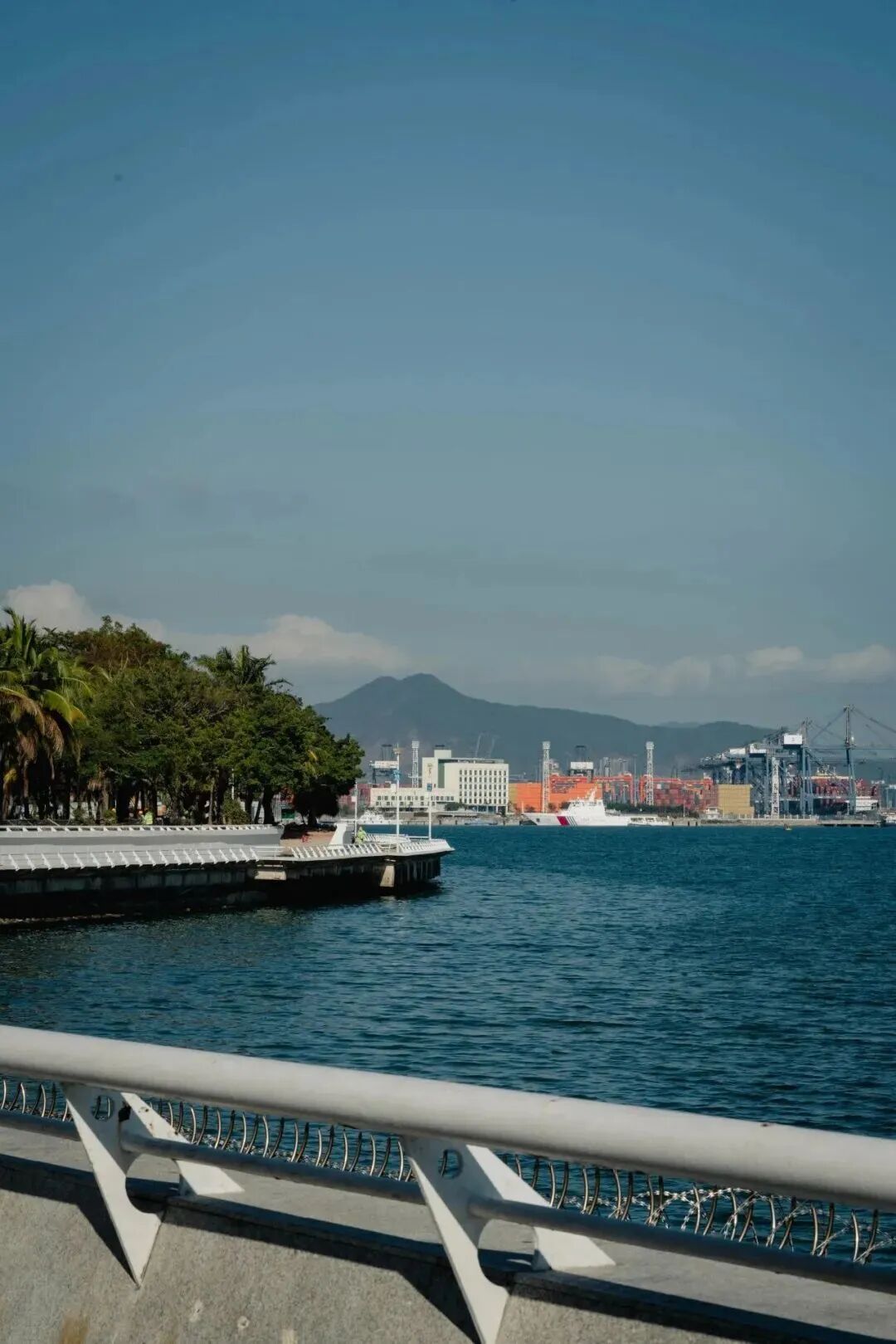 踱步至海滨栈道,眼前展开一幅动静交融的画卷:一半是繁华,一半是静谧,瞬间治愈所有喧嚣!盐田港集装箱轮船繁忙作业,香港荔枝窝、吉澳岛绿意绵延,海风拂面,心境开阔。