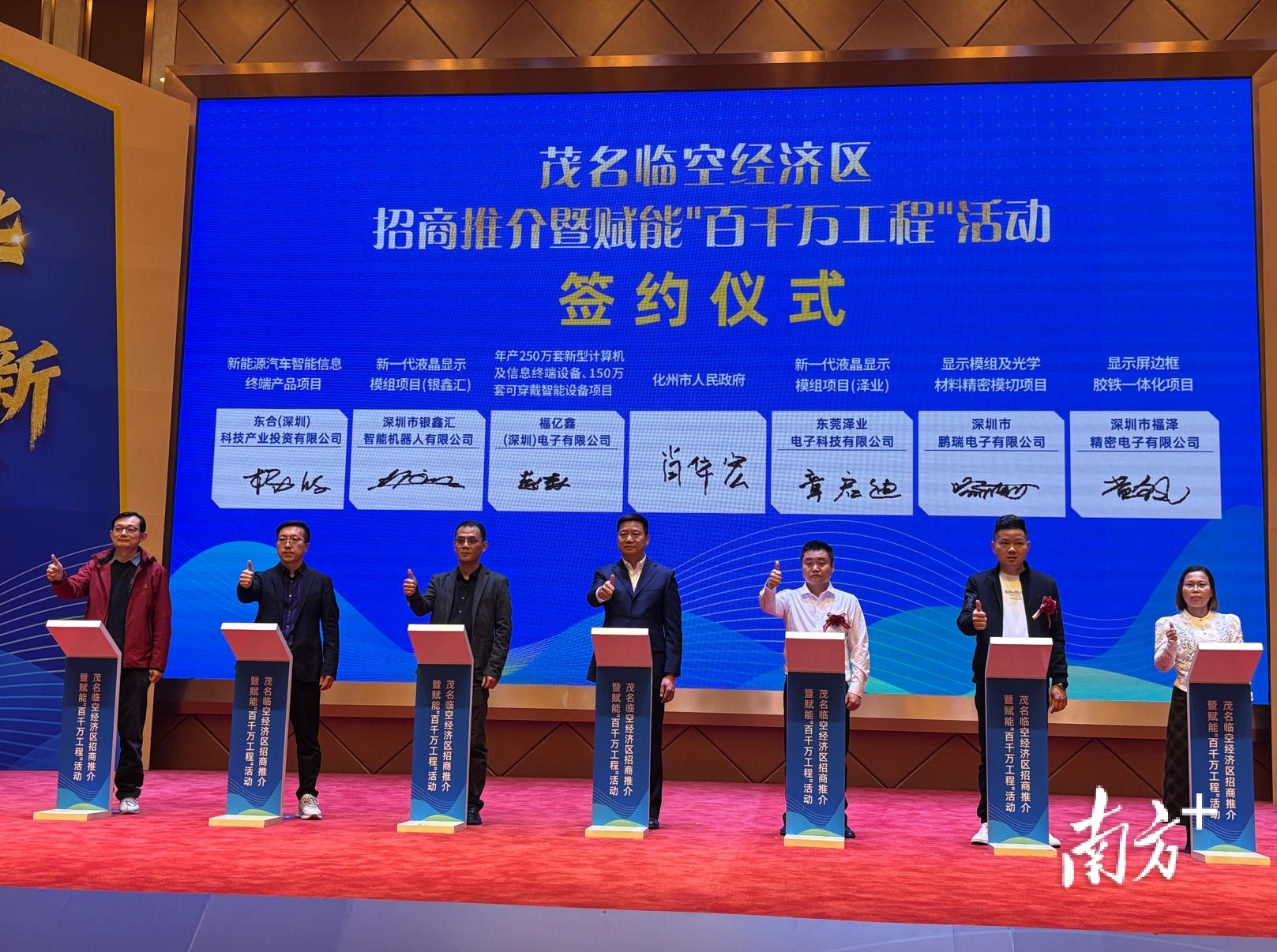 12月17日,在茂名临空经济区招商推介暨赋能“百千万工程”活动中,化州市政府与来自深圳等地的6家电子信息企业现场签约。6家企业将组团落户茂名临空经济区化州创谷产业园,共建车载与消费电子光电智造基地。