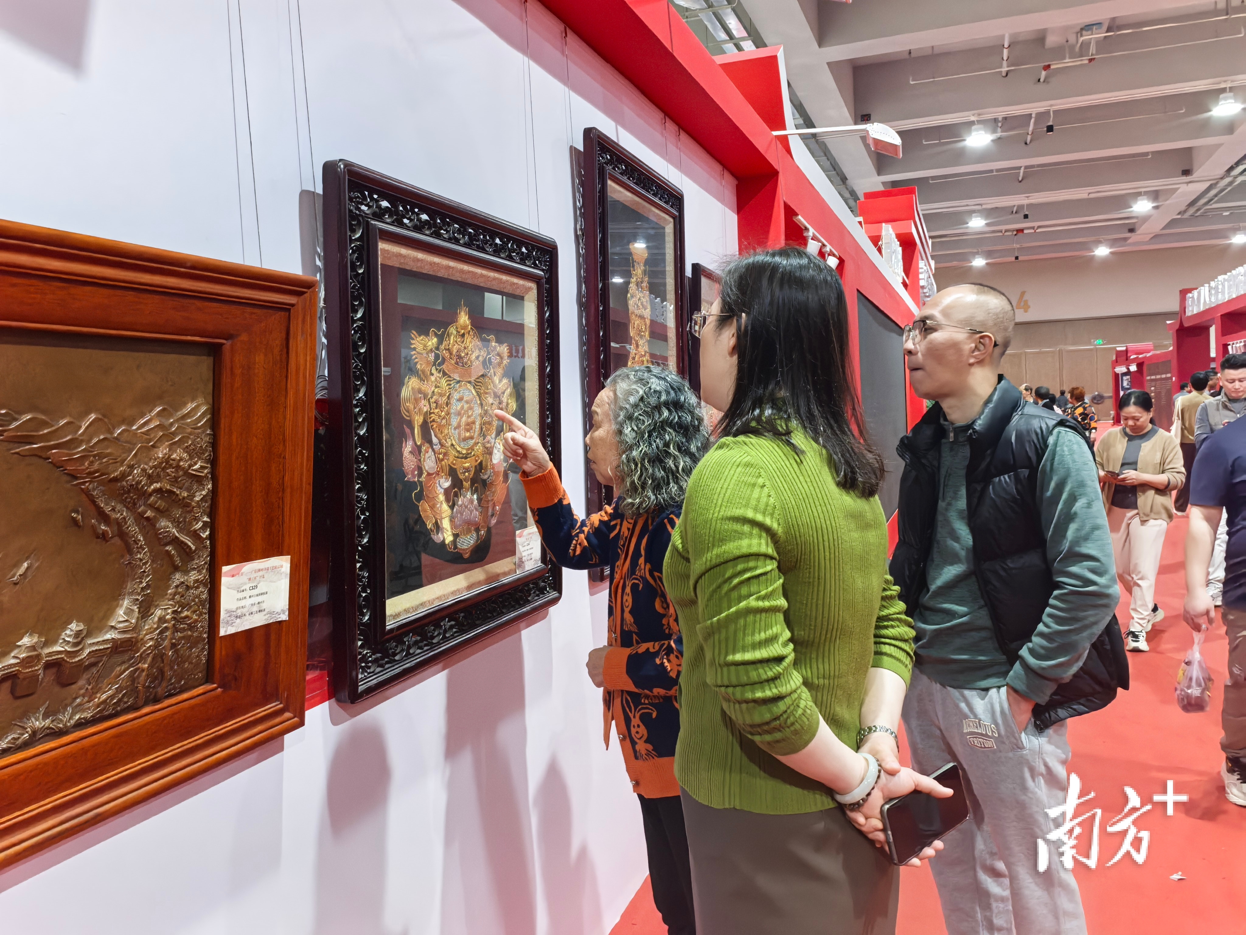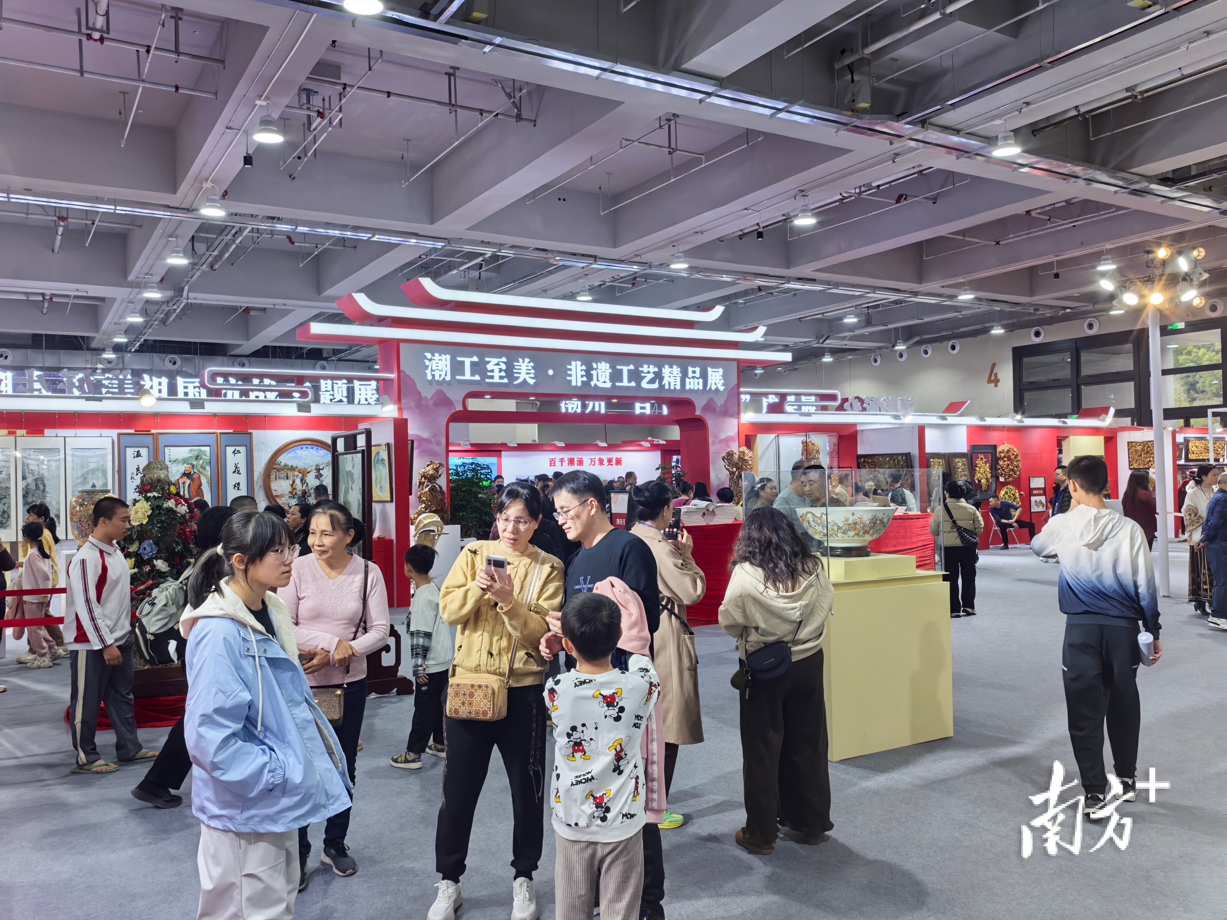 今日一开馆,展厅内已是人头攒动,潮绣、木雕、陶瓷、麦秆画等非遗精品前围满了观众。从下午起,鉴于场馆人流过多,组织方实行人数管控,确保观展安全有序。市民周女士特意趁闭幕日带孩子前来观展。“朋友圈都被这个展‘刷屏’了,再不来可就错过了!”她表示,希望孩子能近距离感受潮州工艺美术的魅力,让这份传统之美能在下一代心中生根发芽。
