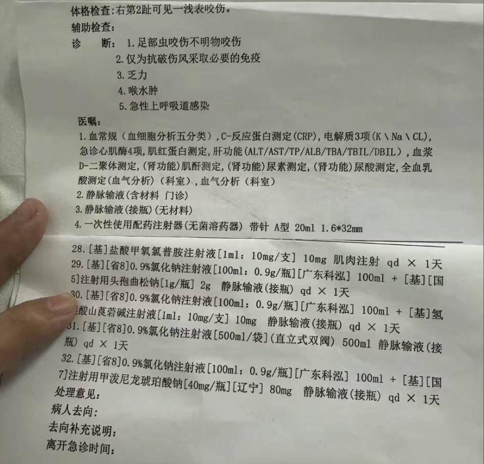 “其间,她呕吐反应严重,意识开始模糊。护士给打了止吐针,打了增加新陈代谢的药。然后换了一个医生,再次安排查血。”张鹏说,第二次查血结果出来,医生说不排除是毒蛇咬伤,他们没有相关经验,建议转院到附近的四二五医院。