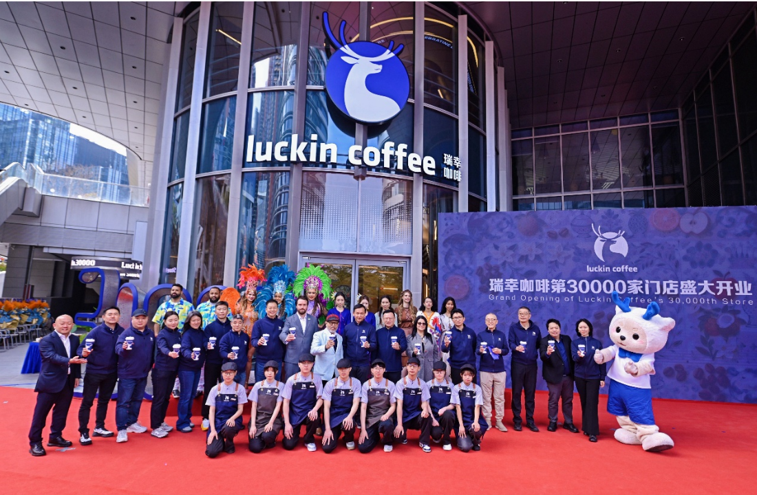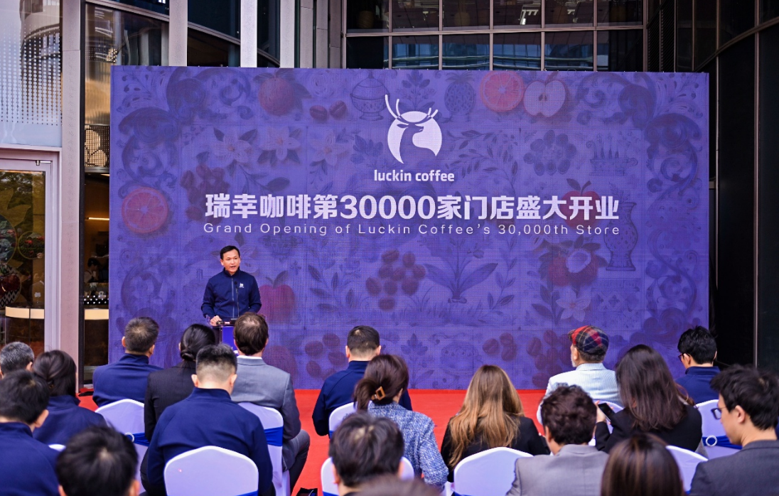 日前,瑞幸咖啡全国第30000家门店——“原产地旗舰店”在深圳龙岗区星河WORLD园区正式开业。这也是全国首个破3万家门店的的餐饮品牌。