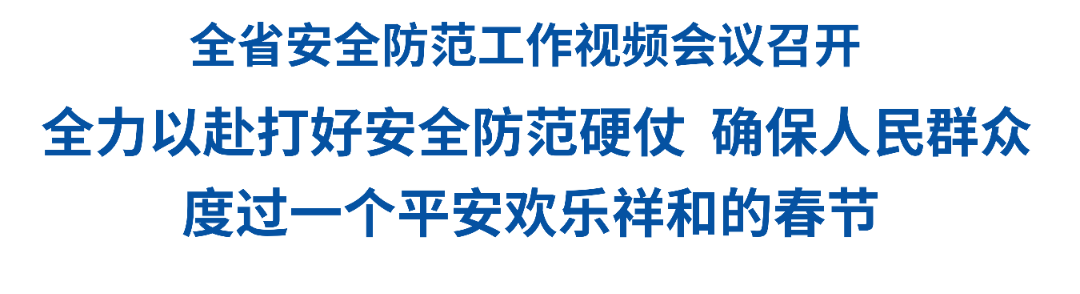 2月11日上午,省安委会召开视频会议,深刻分析当前安全生产工作面临的形势任务,对做好春节前后安全防范工作进行再动员再部署再落实。