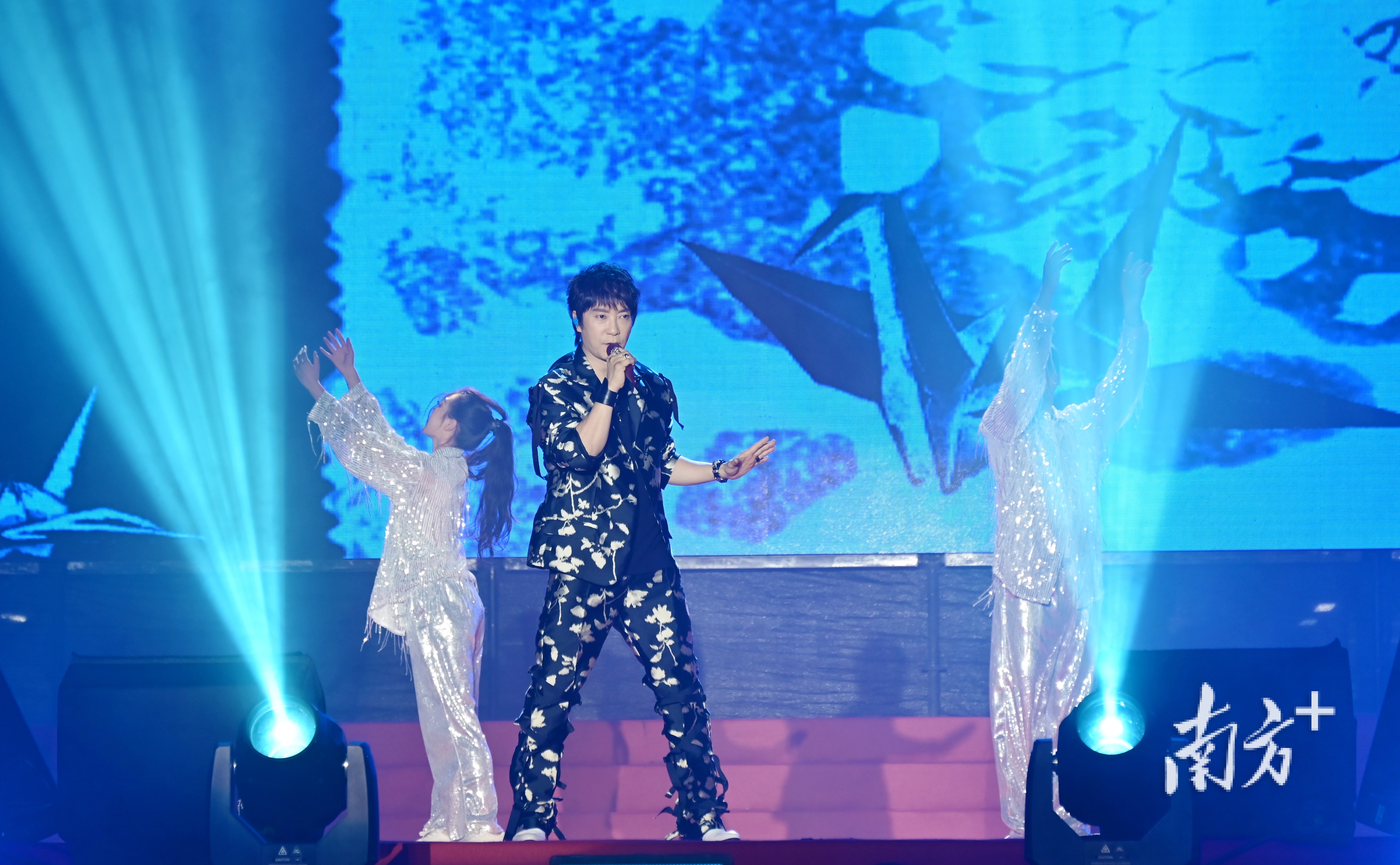 “我的心,在连州……”邰正宵即兴改编歌词,瞬间点燃了全场近万群众的热情。黄津 摄