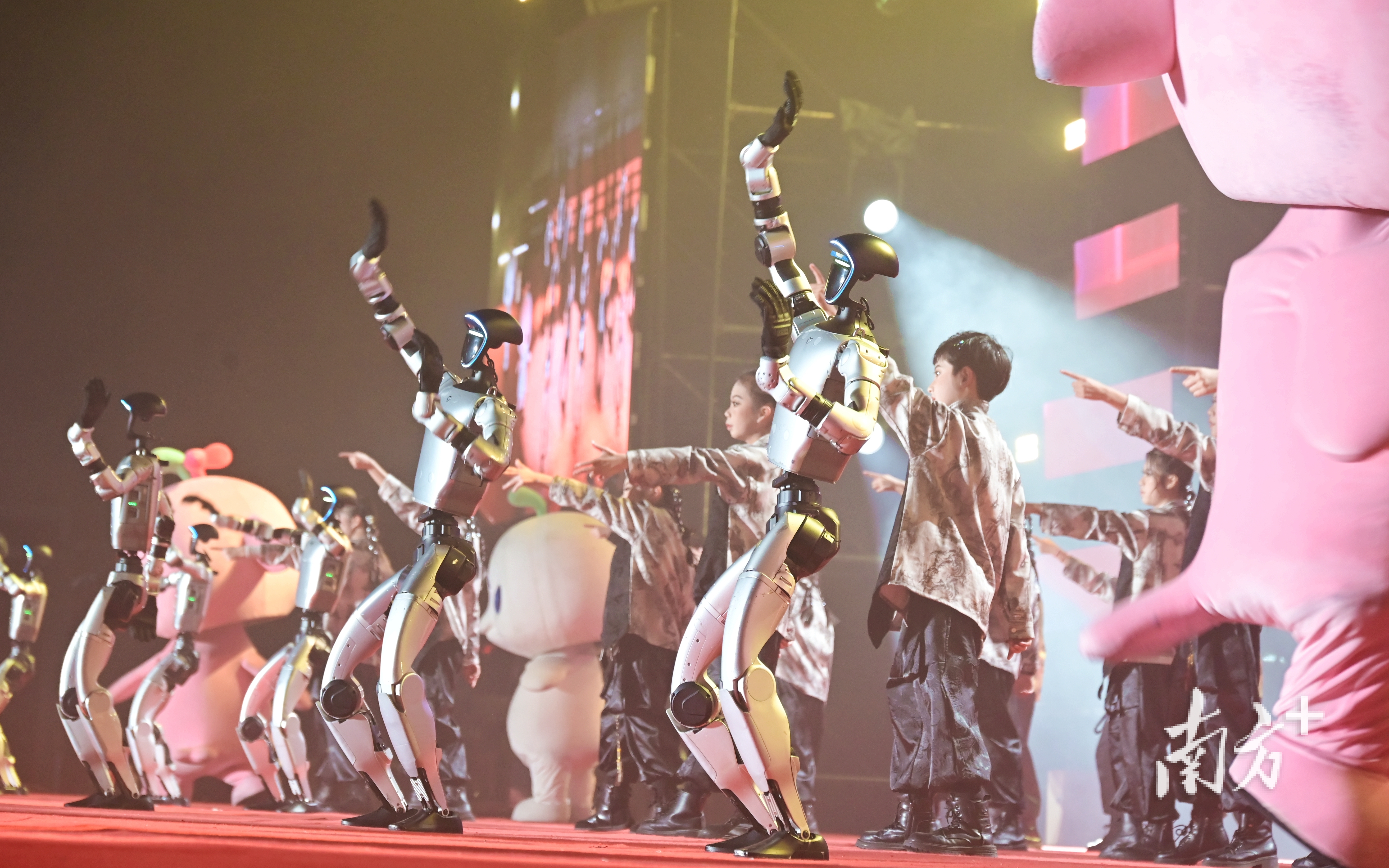 时代旋律激荡人心,多元文化交融共生。动感街舞《马》活力四射、朝气蓬勃,展现出连州青年敢闯敢干、昂扬向上的精神风貌;机器人与“大湾鸡”吉祥物同台互动,趣味十足、年味满满,为晚会增添灵动与欢乐;古巴乐队带来异域风情表演,热情奔放、旋律动人,彰显连州开放包容、接轨世界的宽广胸怀;歌曲《美丽家园》深情悠扬,唱出城市更新、乡村振兴、家园更美、生活更甜的幸福图景;《摇滚英歌舞》气势豪迈、正气凛然,展现连州儿女攻坚克难、奋勇争先、一身正气的奋进姿态。