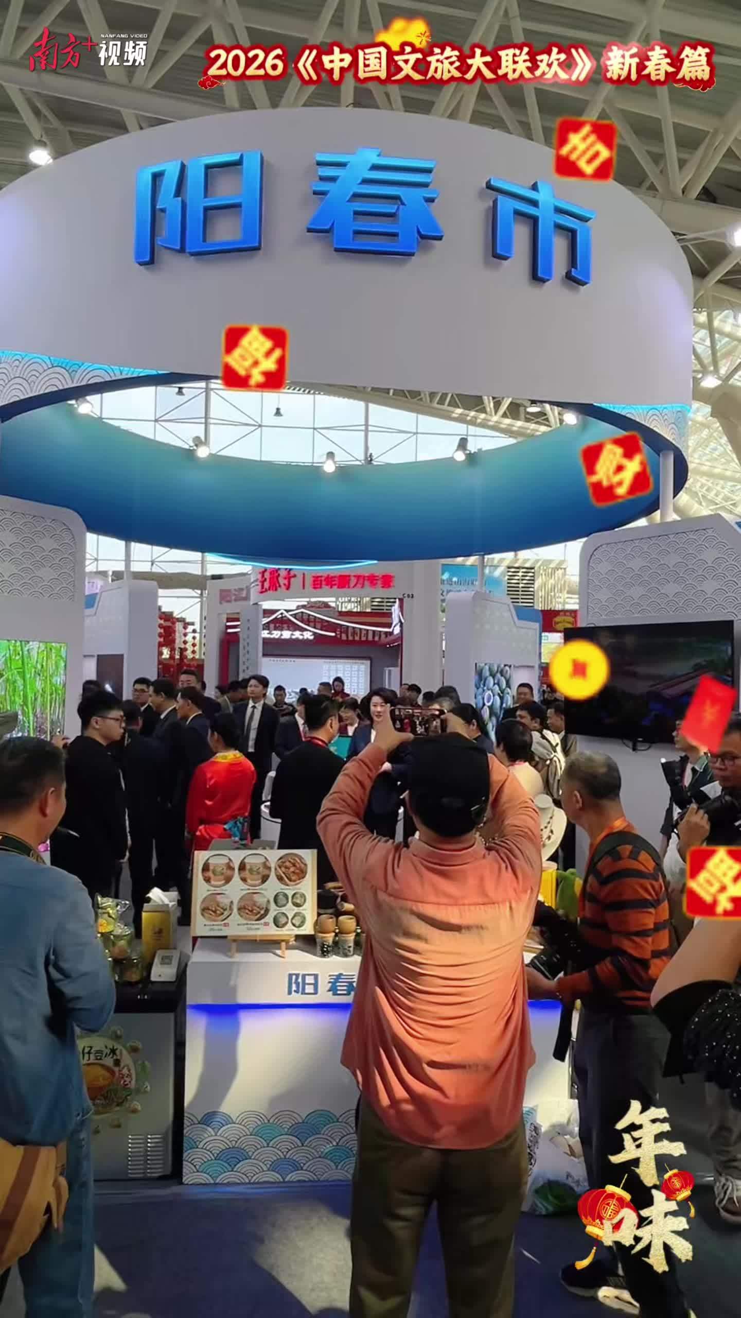 2月7日,以“山海共生,欢动阳江”为主题的《2026中国文旅大联欢》新春篇在阳江国际会展中心正式启幕,这场串联全国9省份29座城市文旅资源与广东省“百千万工程”农文旅融合成果的盛会,吸引了各地嘉宾与市民游客齐聚。其中阳春展位一亮相便人气爆棚,各式本土特色好物齐聚,鲜香滋味与地道农产成为现场一道亮眼的风景线。