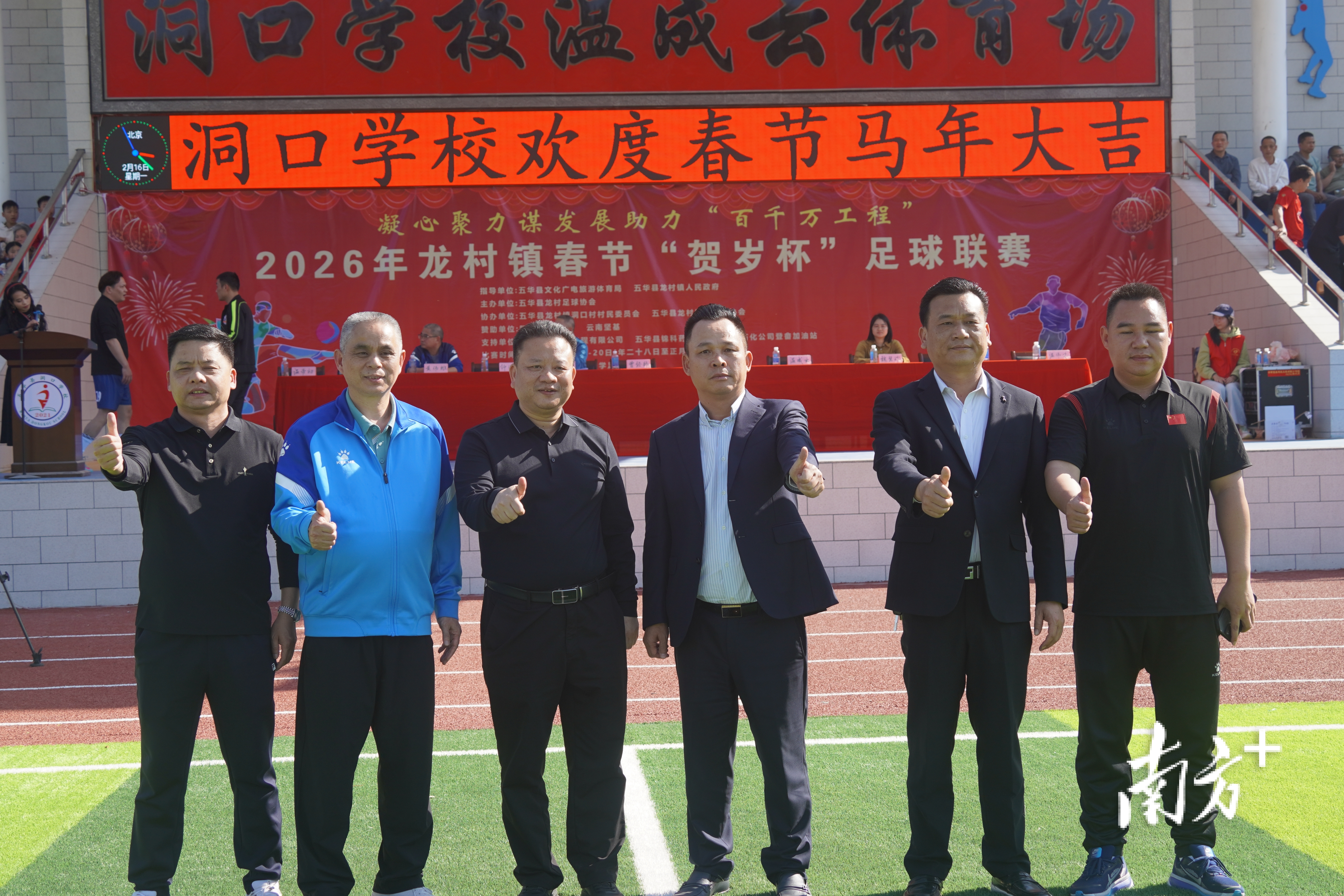 这片由洞口村杰出乡贤、云南坚基建筑工程有限公司董事长温成云全额捐建的标准足球场,于2026年新春正式启用,成为五华县乡村足球联赛“贺岁杯”(五华村超)的全新赛场。