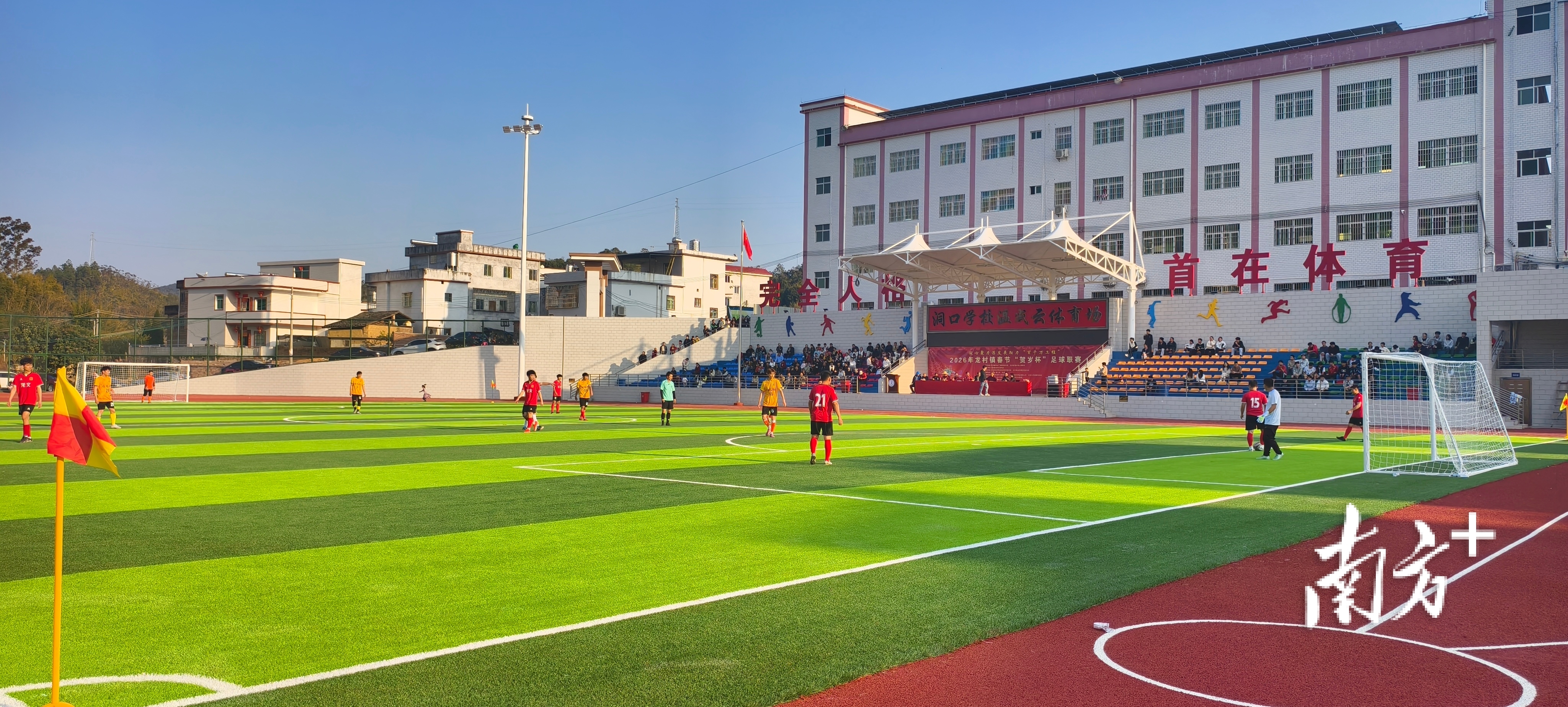 新春伊始,位于五华县龙村镇洞口村的洞口学校温成云体育场里人声鼎沸,一场充满烟火气的乡村足球赛正在火热上演。崭新平整的绿茵场、明亮醒目的灯光围网、此起彼伏的呐喊助威,围满了前来观赛的村民与返乡青年。