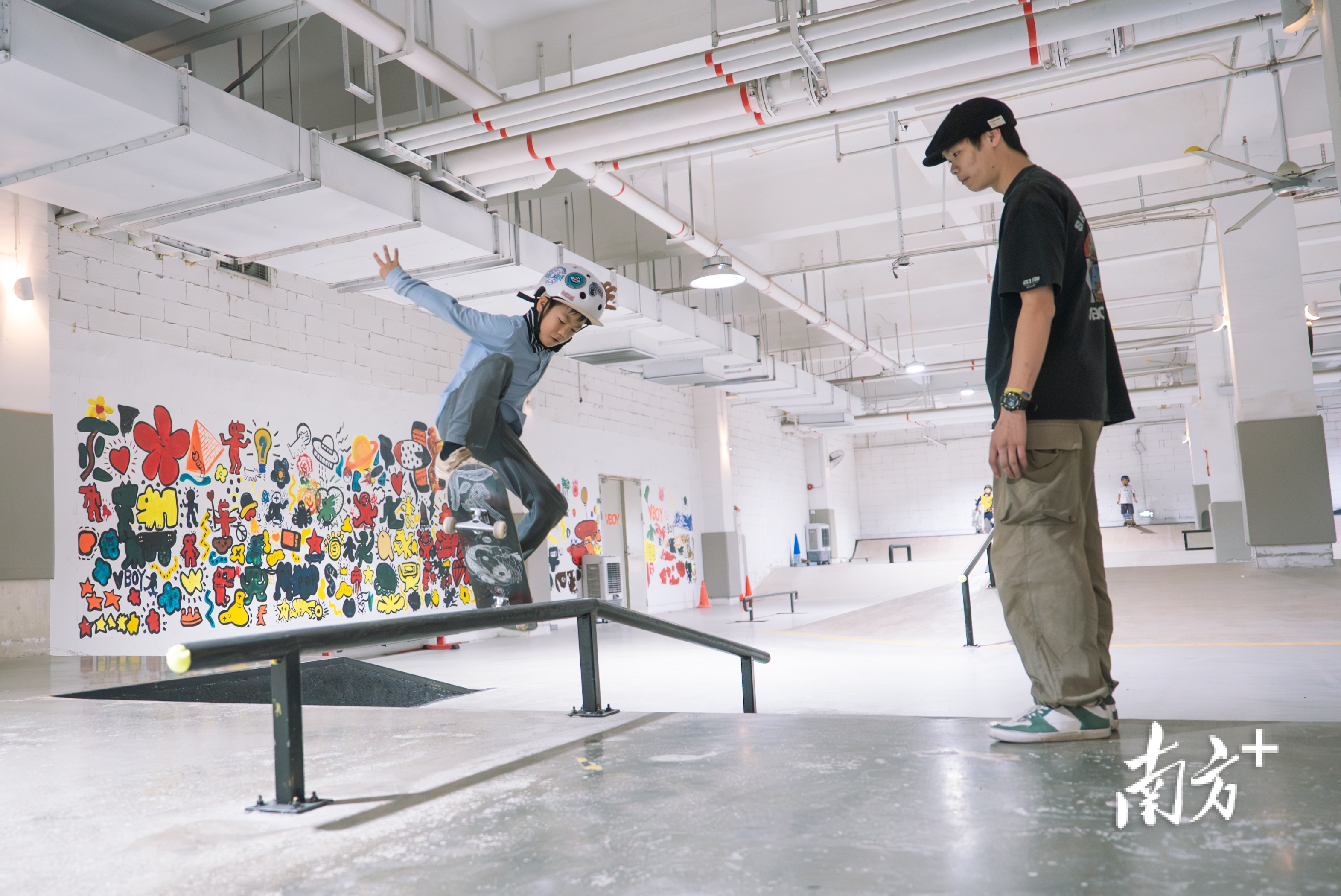 专业赛道人才济济,业余赛道同样在发力。11月6日晚,在惠州市区的VBOY滑板学校惠州校区,近10名少年在这里训练。他们戴着头盔、护具,在教练的指导下反复练习自己的动作,一次次摔倒之后,一次次捡起滑板从头练过,诠释着不服输、不放弃的滑板精神。