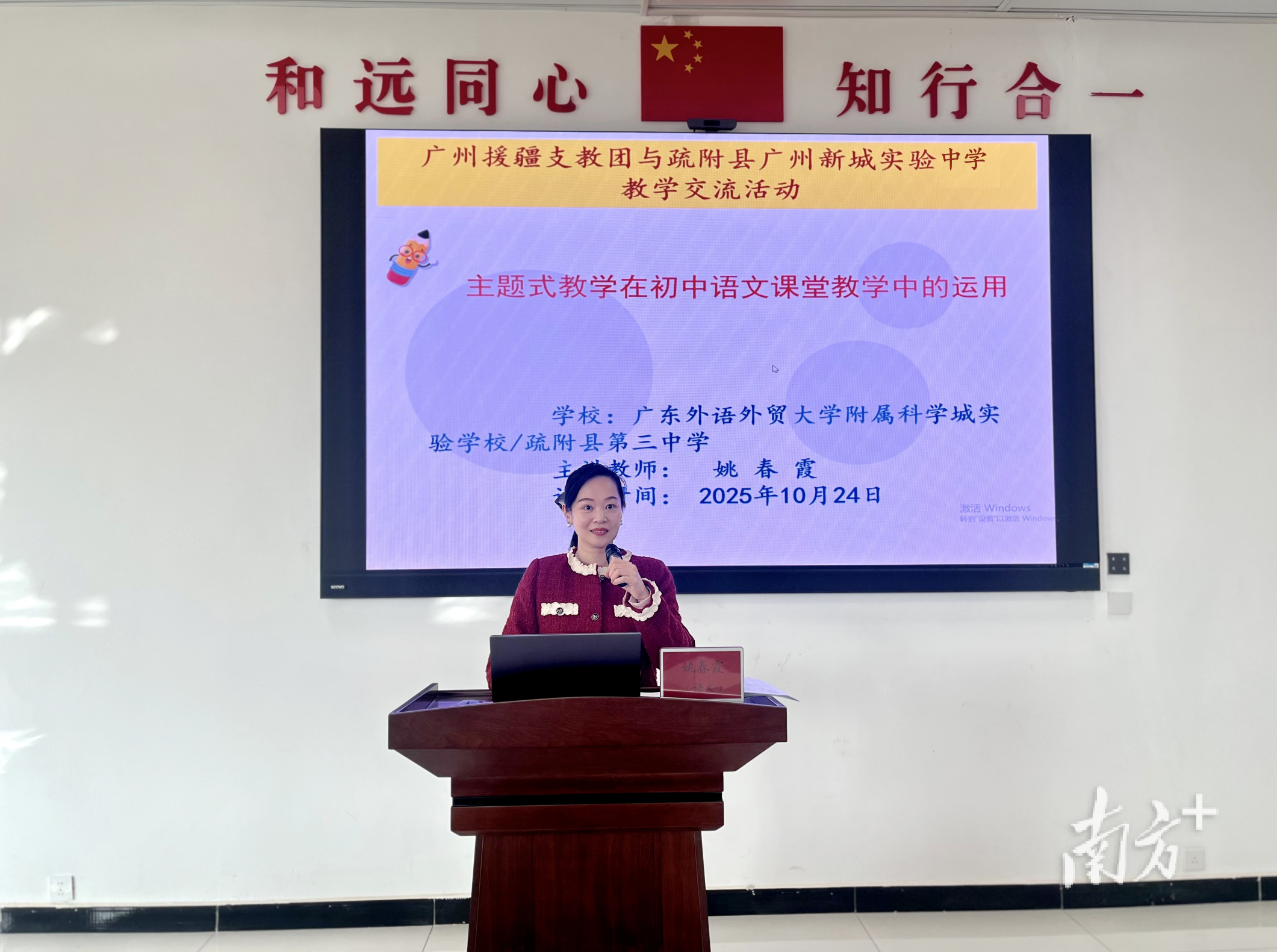 10月24日,广州援疆支教团副团长、疏附县第三中学副校长姚春霞率领11名援疆教师到广州新城实验中学开展教学交流活动。支教团一行在7个学科中以听课、评课、专题讲座等形式,与广州新城实验中学教师开展深入交流,促进业务探讨和经验分享。