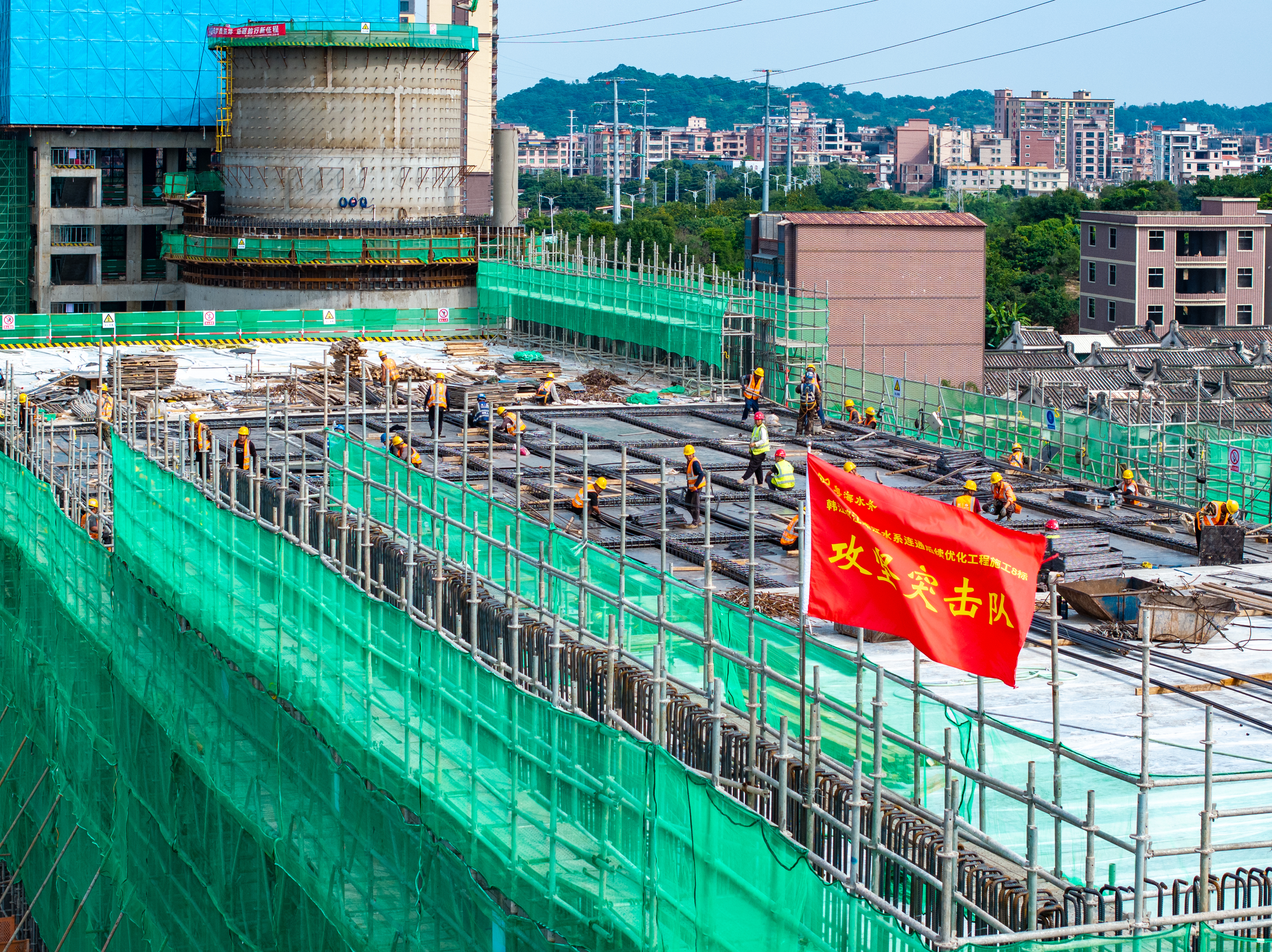 10月28日,韩江榕江练江水系连通后续优化工程下架山泵站泵房实现封顶,为泵站后续机组安装及系统联调奠定基础。