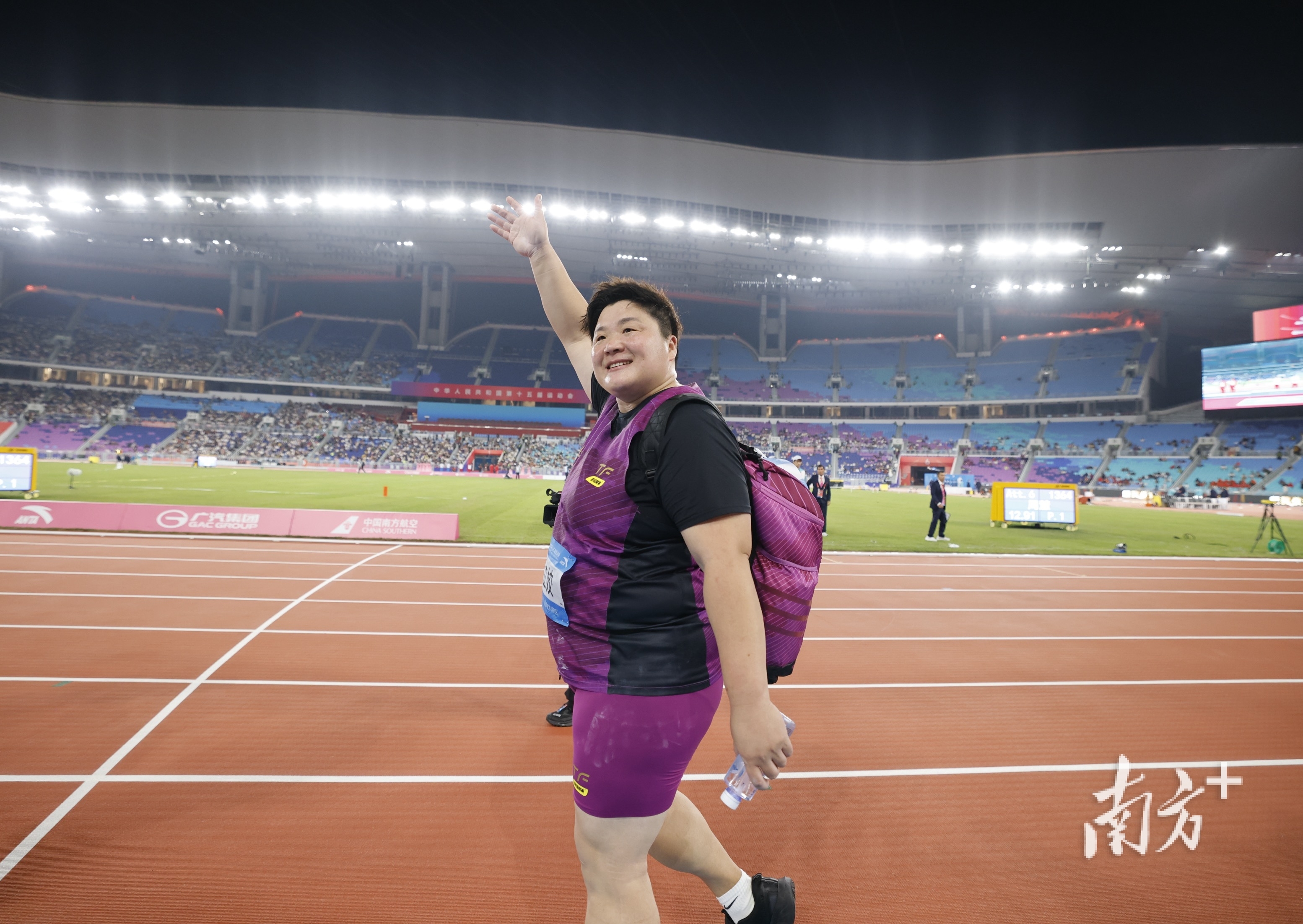 11月16日晚,十五运会女子铅球决赛在广东省奥体中心体育场举行。