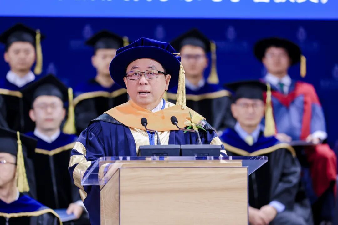 倪明选强调:“港科大(广州)肩负着明确使命,助力中国实现科技自立自强。而我们坚信,卓越教育的关键,在于培养出兼具好奇心与追求卓越精神的学生。”他寄语毕业生们:不要甘于平庸,要力求精进!