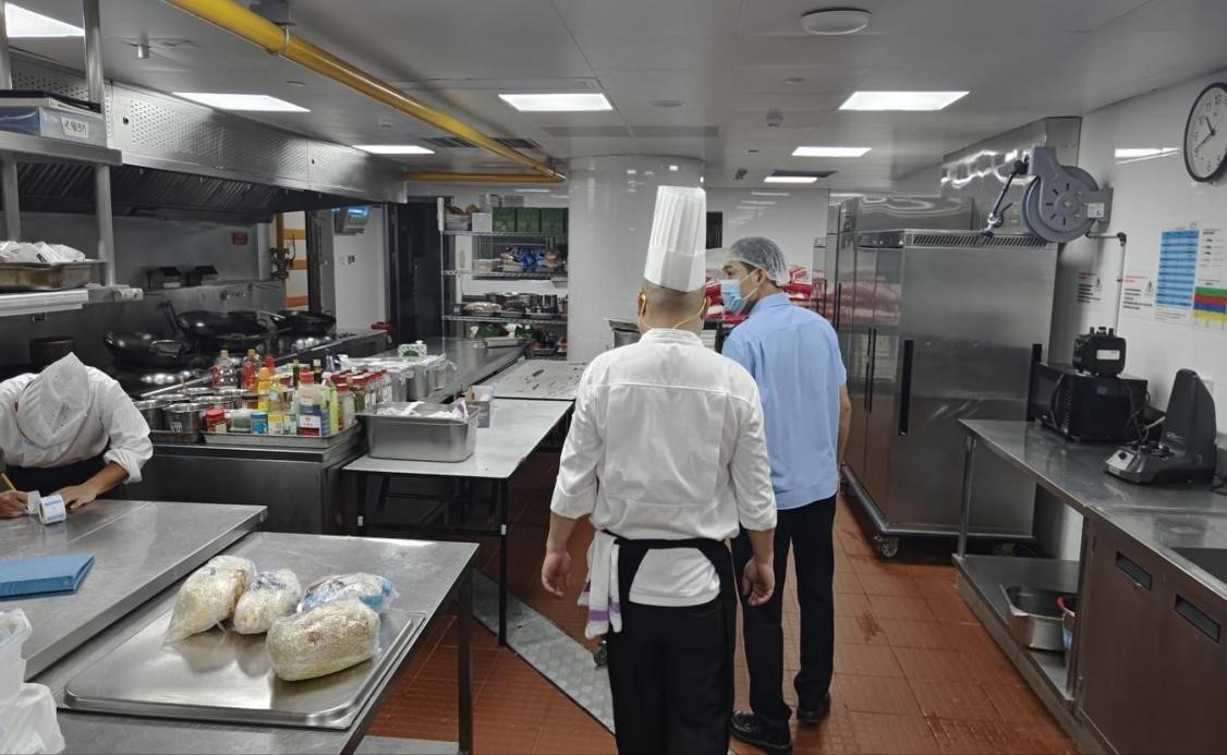 作为全运会运动员的接待酒店,南沙花园酒店是保障全运会食品安全的“第一道防线”。港湾市场监管所制定专项监管方案,提前介入指导酒店开展筹备工作。通过划定专用食材仓库、独立烹饪厨房、固定配送路线等多项举措,实现食品全环节严控;对供应的生鲜食材实行“产地溯源+票证核验+农残快检”三重把关,同时规避豆角、贝类等高风险食材。