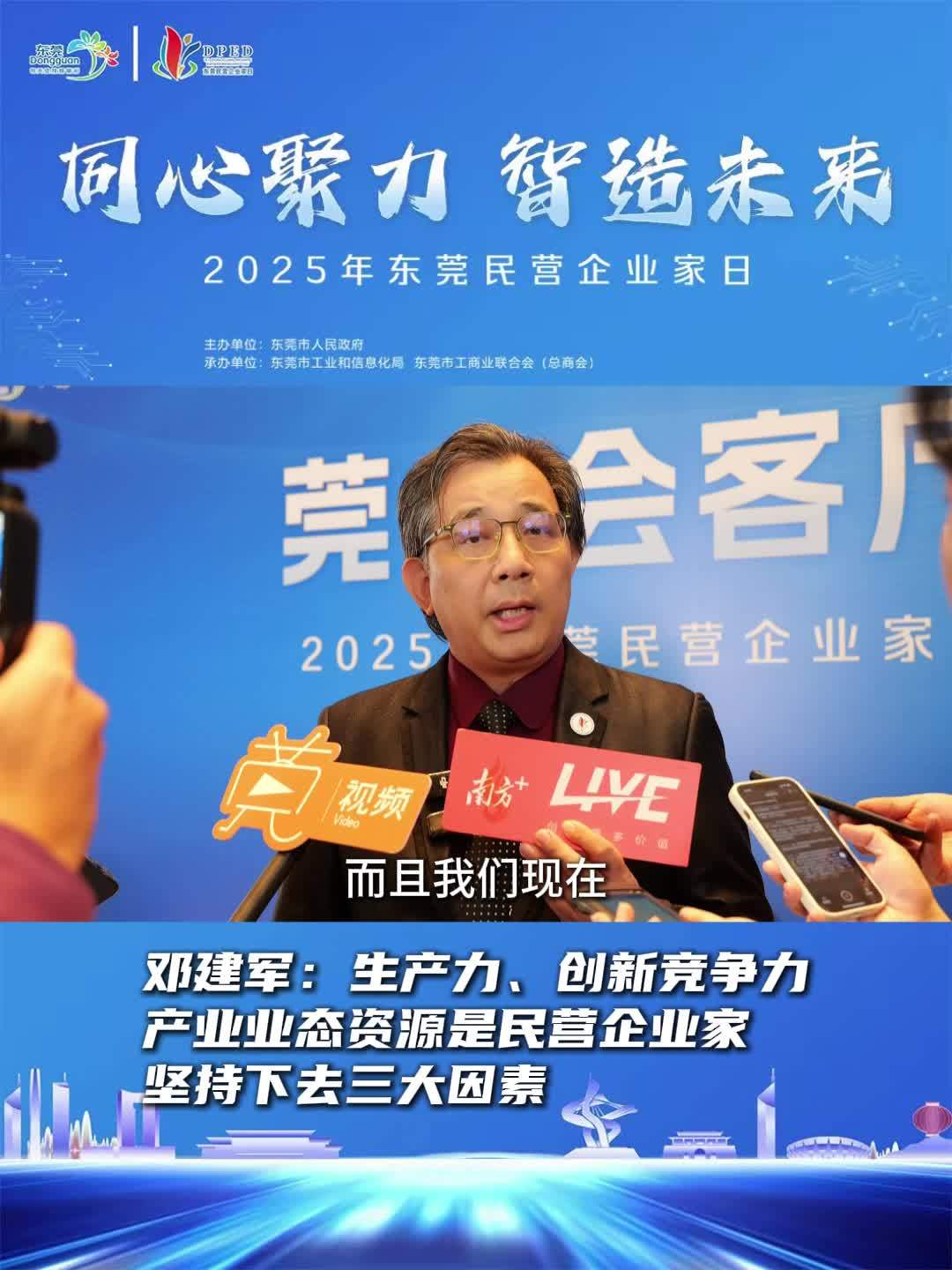 为进一步提振民营企业家发展信心、凝心聚力,11月1日,主题为“同心聚力,智造未来”的2025年东莞民营企业家日系列活动举行,活动通过莞商学院大讲堂、民营企业家日交流大会等致敬民营企业家群体,持续优化营商环境,为东莞民营经济高质量发展注入新动能。活动期间,东莞市工商联(总商会)常委、东莞市绿色建筑协会会长、广东维美工程设计有限公司董事长邓建军接受南方+采访。