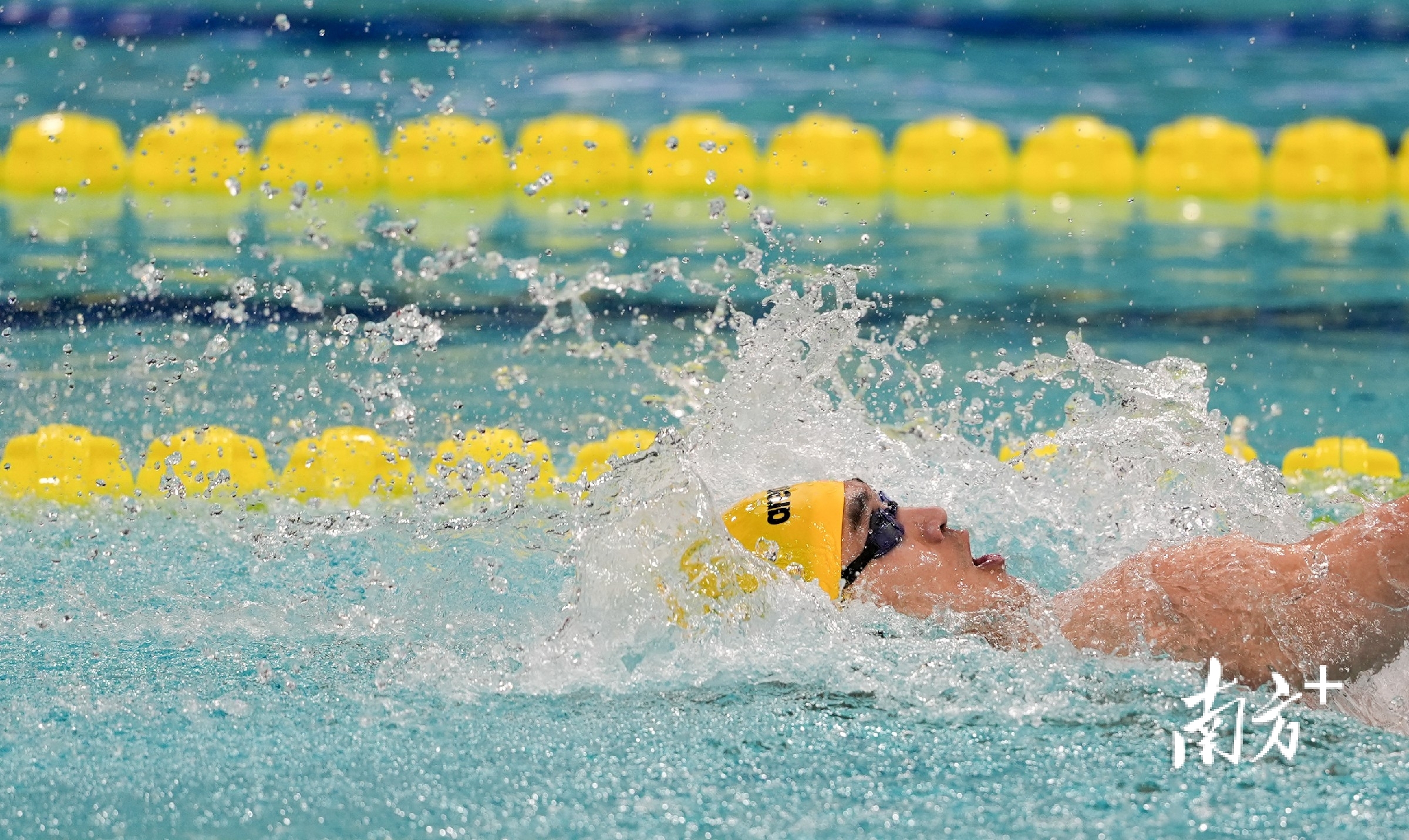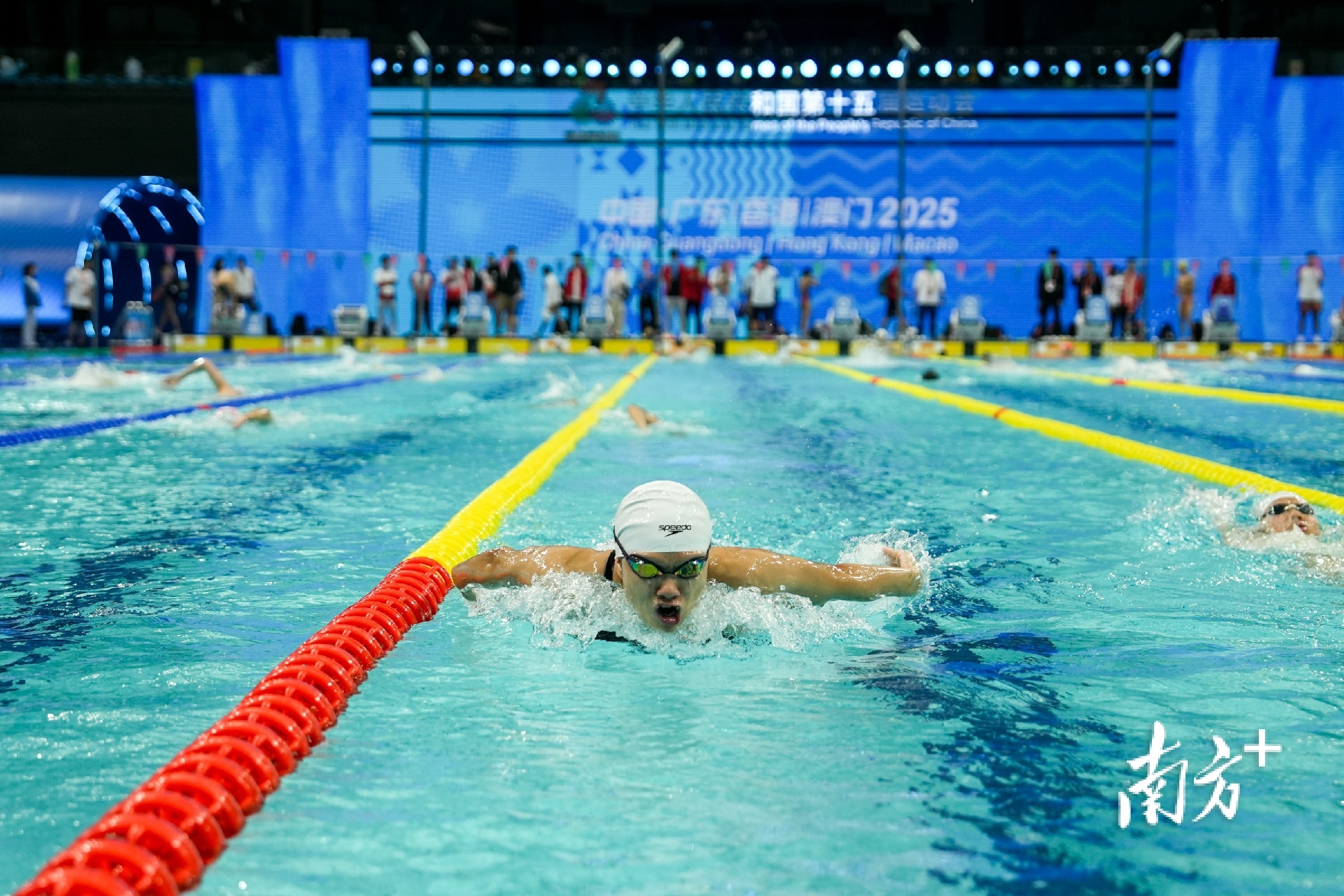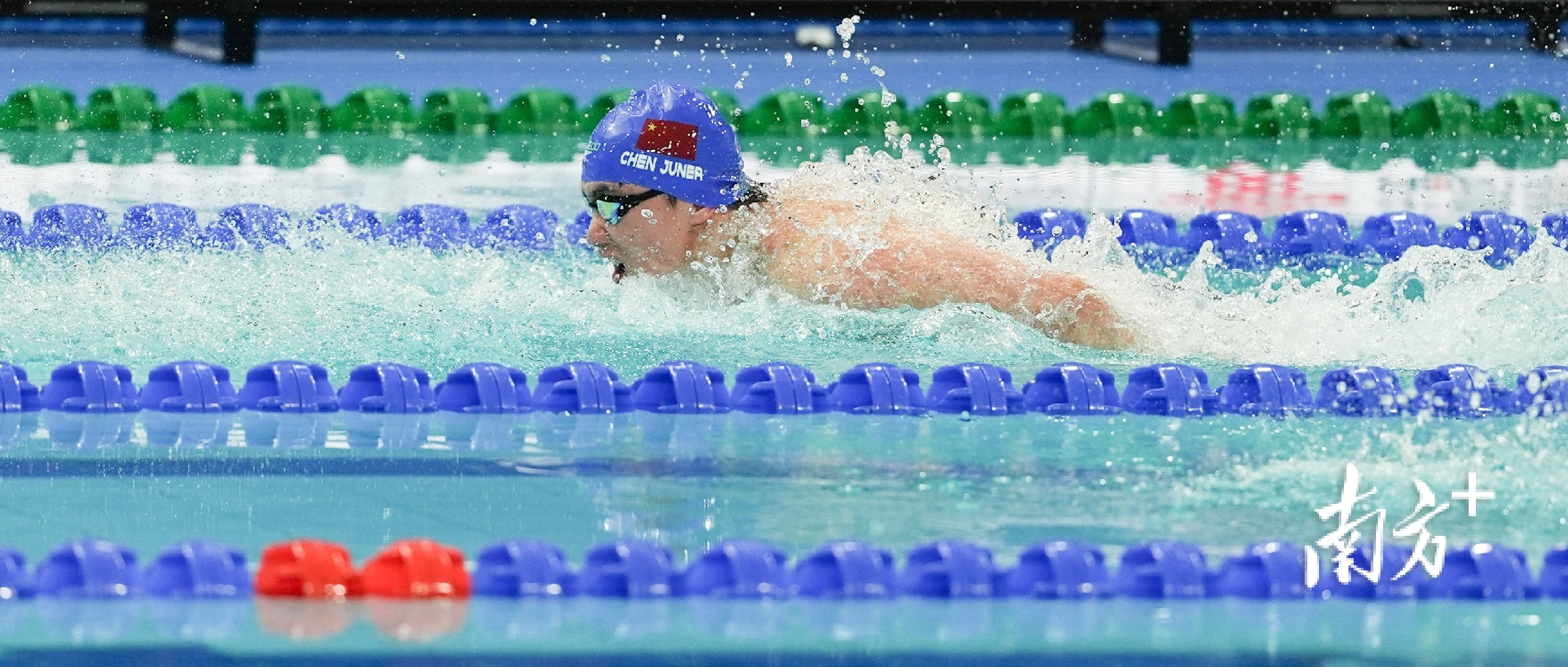11月16日晚,在男子200米蝶泳决赛中,广东队陈俊儿在前150米一路领先,却在最后50米被反超,以1分56秒83遗憾获得铜牌。钟志辉 摄