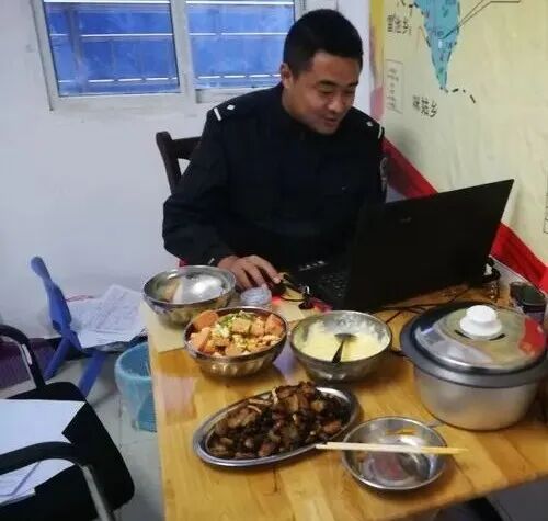 (银小强一边工作一边吃晚饭)