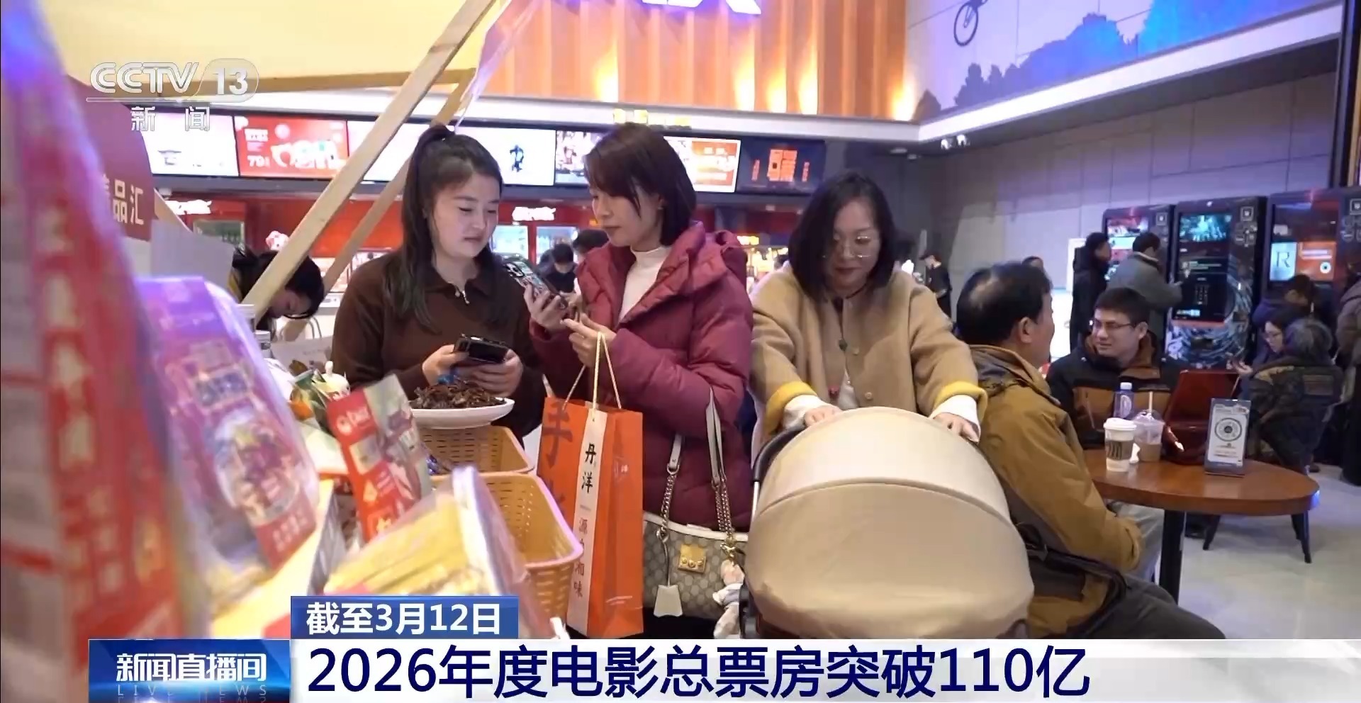 今年开年以来,电影市场热力满满。据网络平台数据,截至3月12日,2026年度电影总票房(含预售)突破110亿元,持续领跑全球单一市场票房榜。