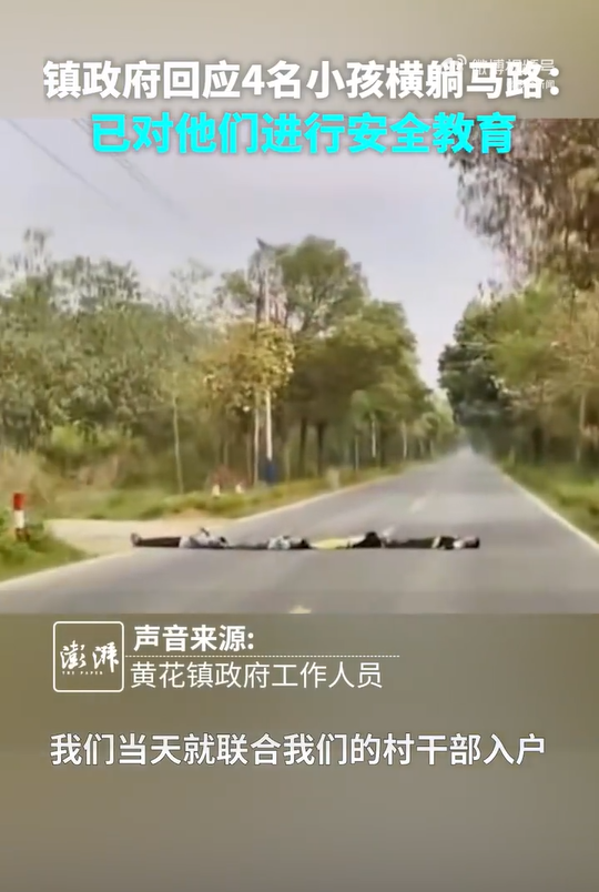 车主@DerekTLM反映,近日驾车在广东清远X408县道,发现前方4名小孩横躺马路,急忙刹车避让,“对自己不负责,也是在危害行车司机”。黄花镇政府人员回应,当天联合村干部找到小孩,对他们进行了安全教育。 编辑 朱琦 订阅后可查看全文(剩余80%)
