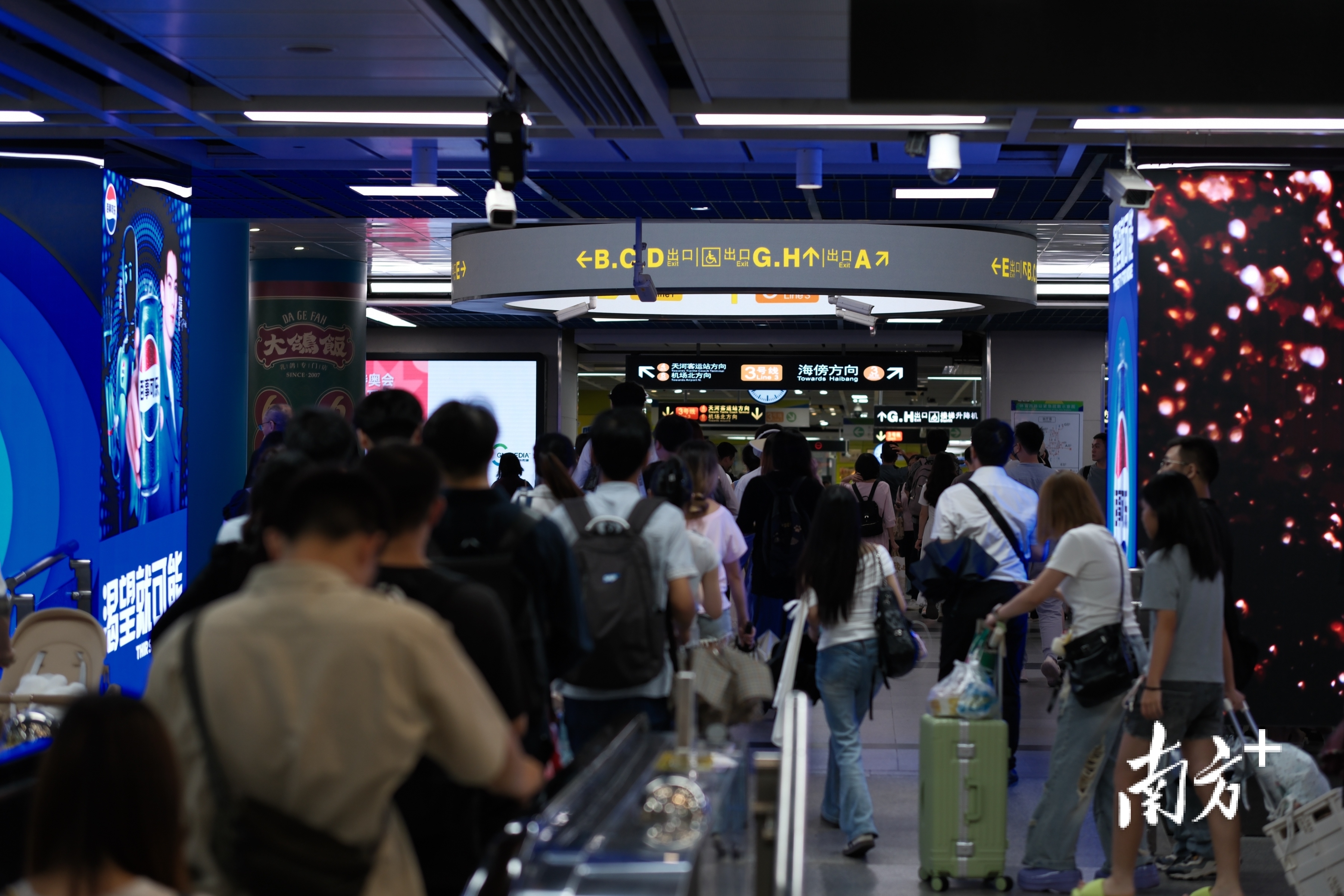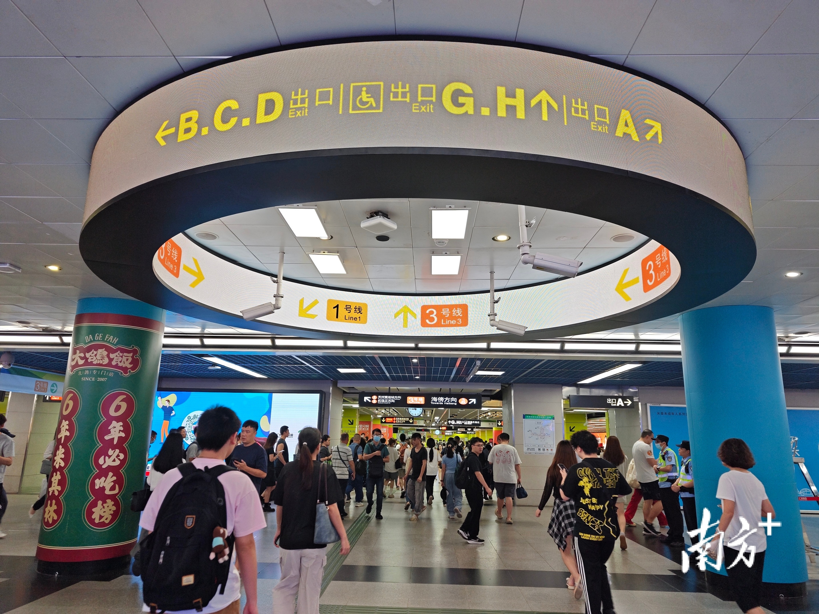 体育西路站作为广州地铁线网车站中的“流量明星”,车站客流常年稳居线网首位。7月暑运以来,体育西路站日均客流44.4万人次,较6月同期增长8%,其中换乘客流日均达33.2万人次。乘客问询需求显著增加,环形导向的应用,360度环形设计加上高亮度的LED屏,让乘客无论从哪个角度均可快速获取清晰、精准的指引,同时也能减少乘客在客流集中区域的停留时间,提升换乘效率。