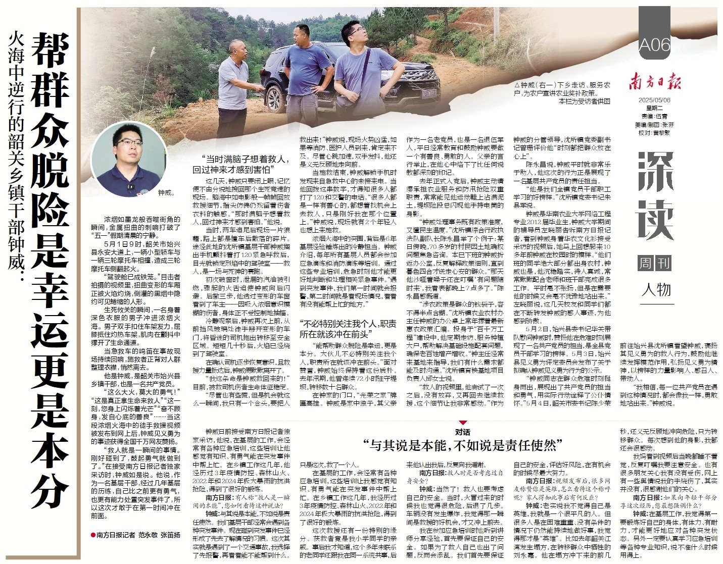 广东韶关冲入火海救人的镇干部钟威获评全国见义勇为模范。南方日报、南方+此前曾独家专访钟威,挖掘背后的故事。