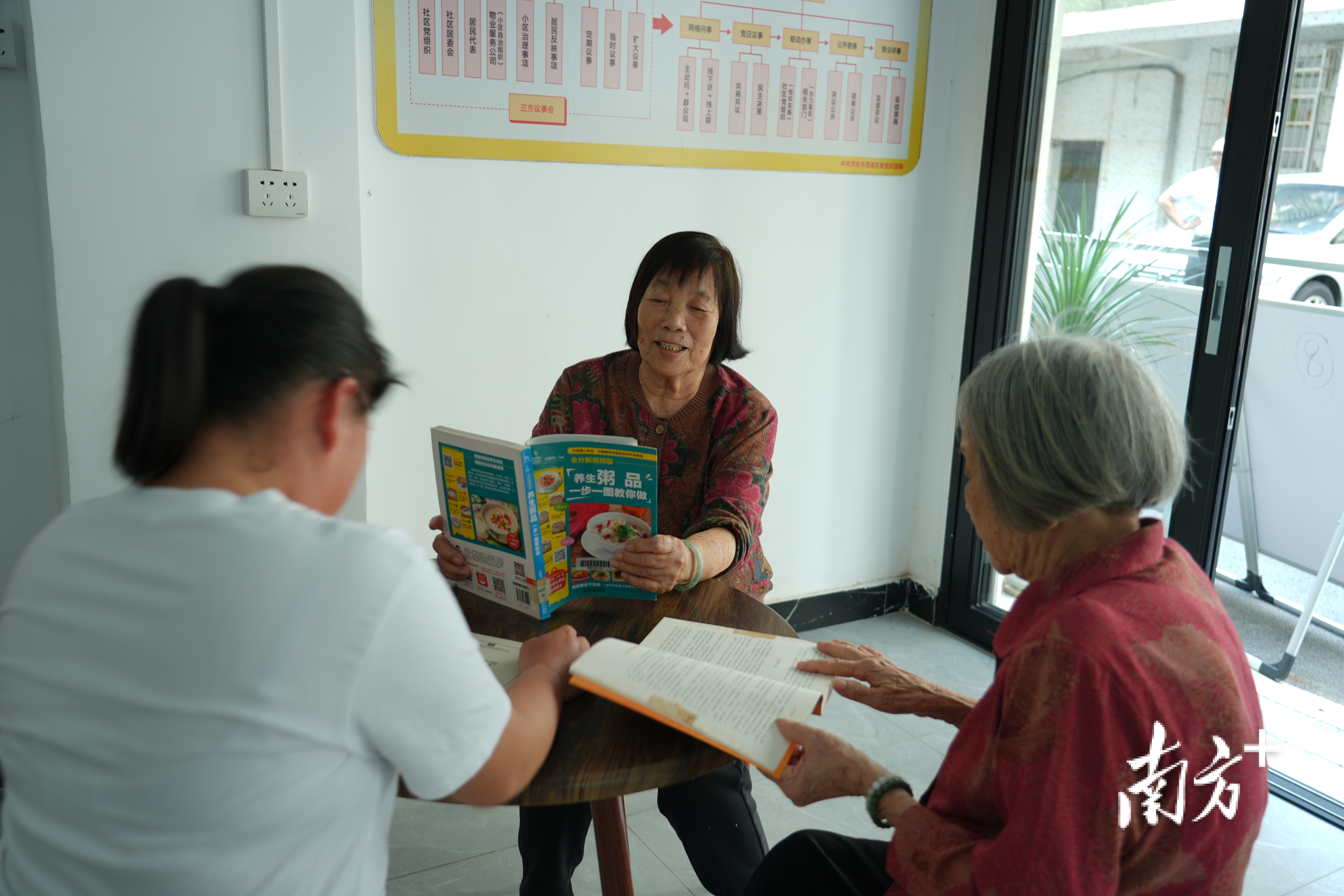 下午5时许,茂南区金源盛世小区“快乐书吧”里,几位老人正带着刚放学的孙辈静静翻阅绘本。书架上,儿童读物与养生书籍比邻而居;窗外,夕阳洒在小区绿地上,一派祥和。