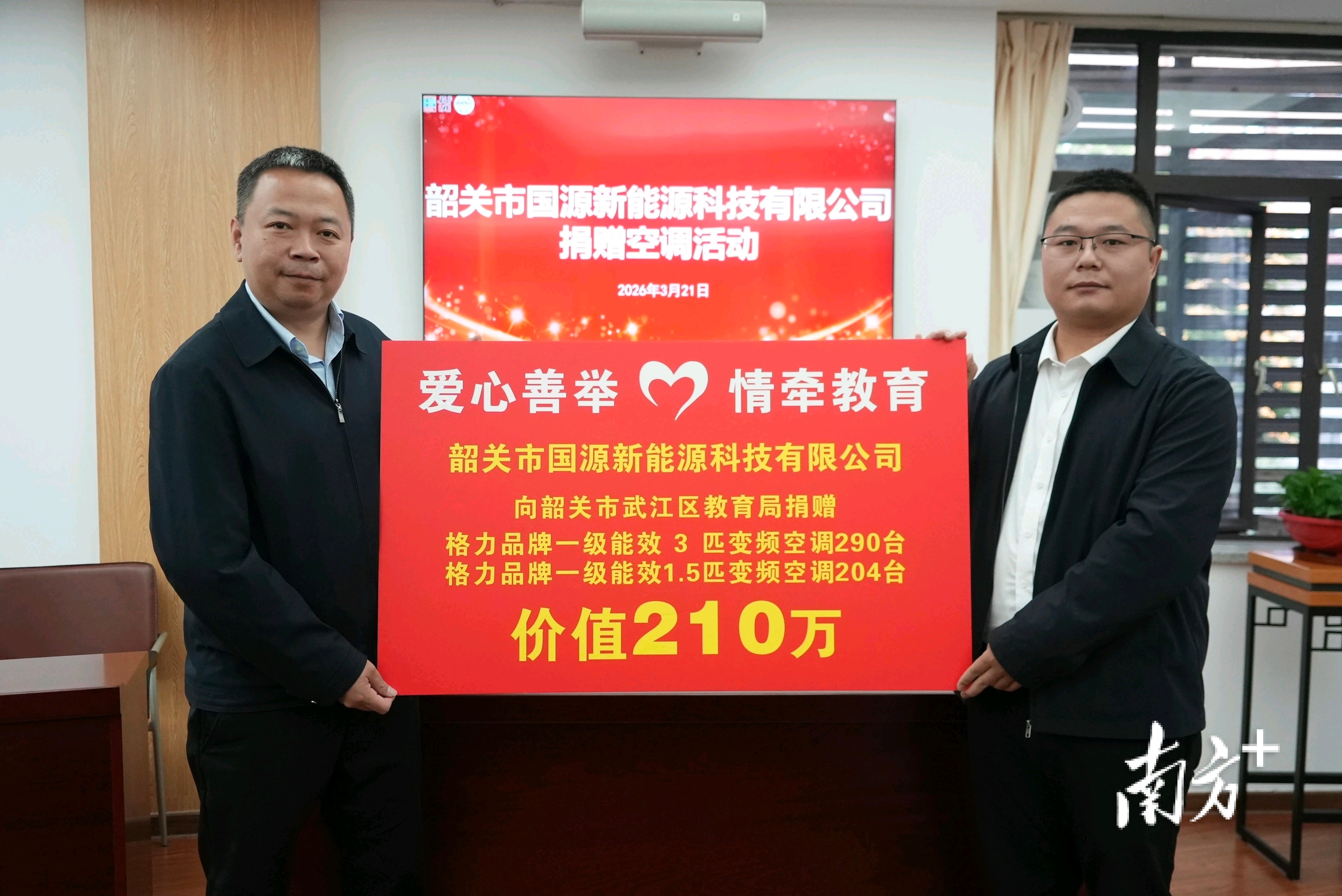 3月21日,韶关市武江区举行爱心企业捐赠空调暨战略合作签约活动。当地一家新能源企业向武江区教育系统捐赠品牌空调共494台,总价值210万元,用于改善校园教学与师生住宿条件,助力推进校园空调全覆盖民生实事。武江区政府、区人大常委会主要负责人,武江区人大代表、爱心企业负责人,武江区政府办、区发改局、区教育局等有关负责同志出席活动。