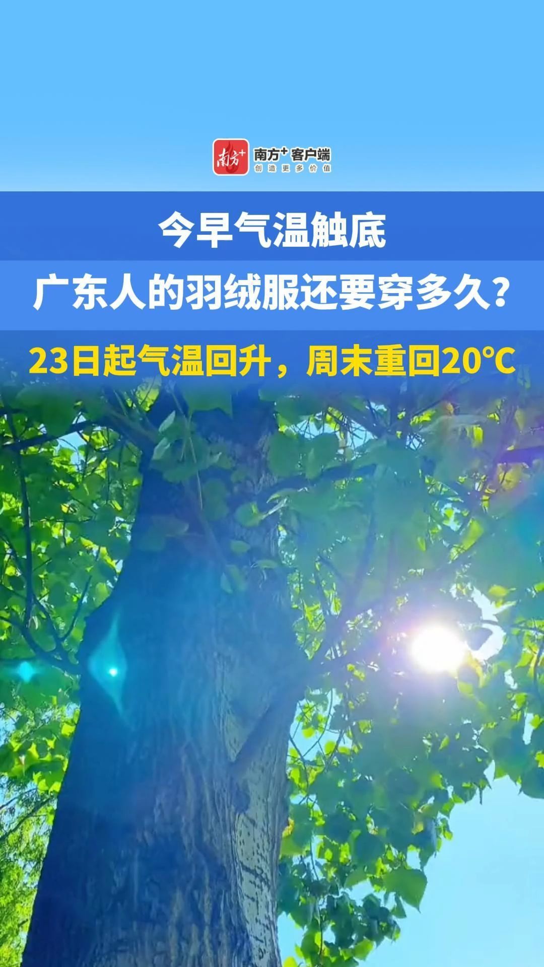 今早气温触底,广东人的羽绒服还要穿多久?23日起气温回升,周末重回20℃