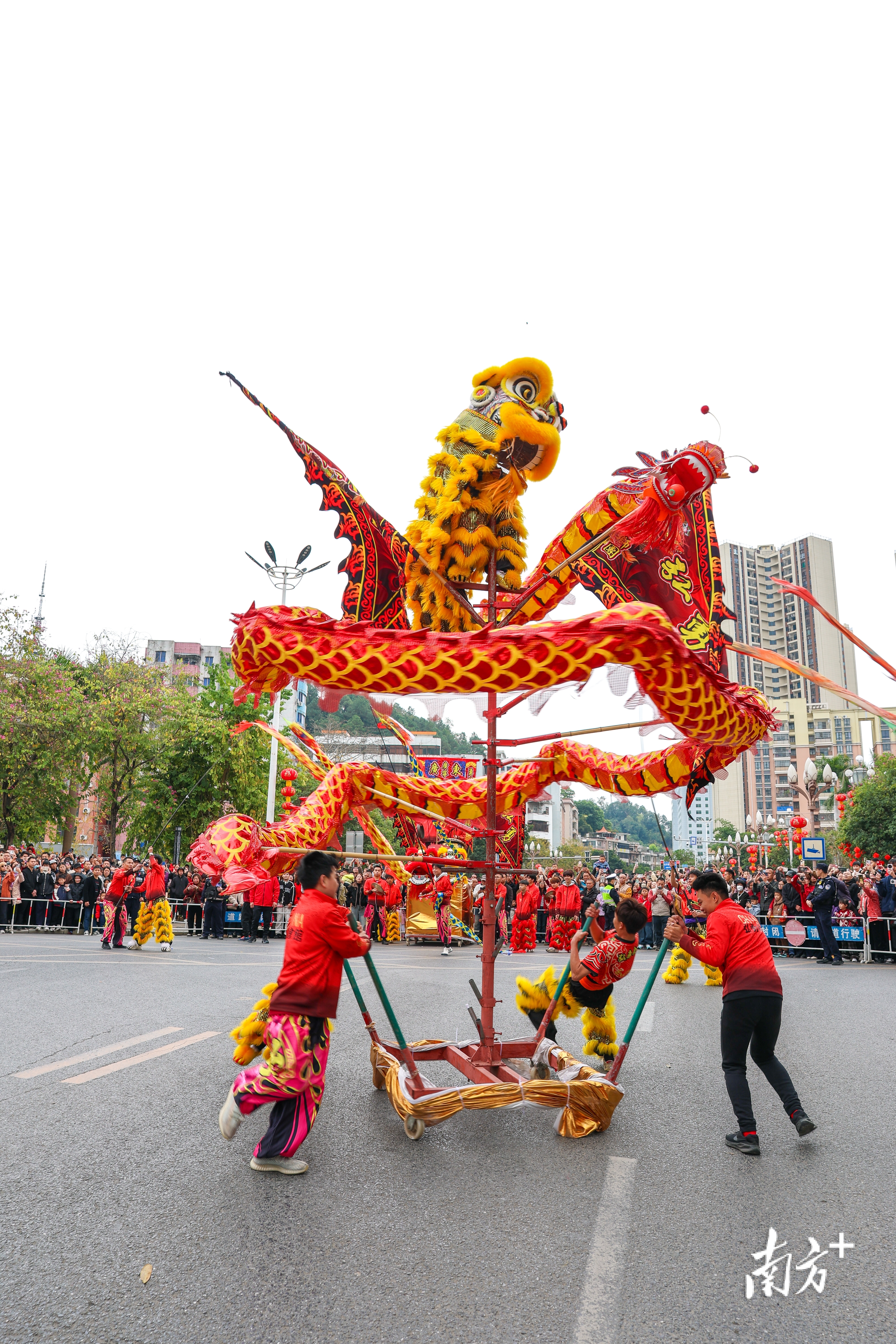肇庆广宁县举行2026年春节龙狮大巡游活动。 南方+ 施亮 拍摄