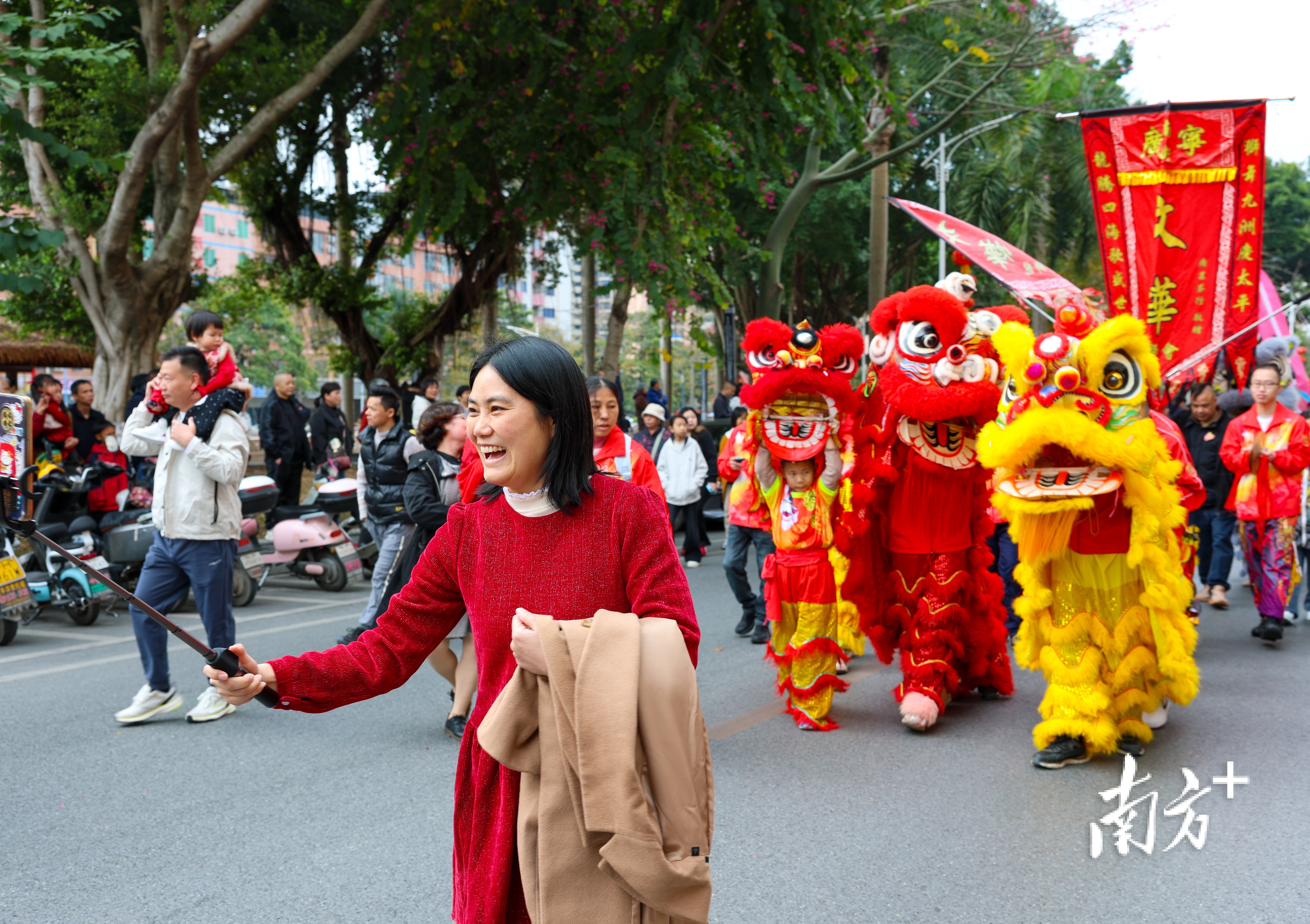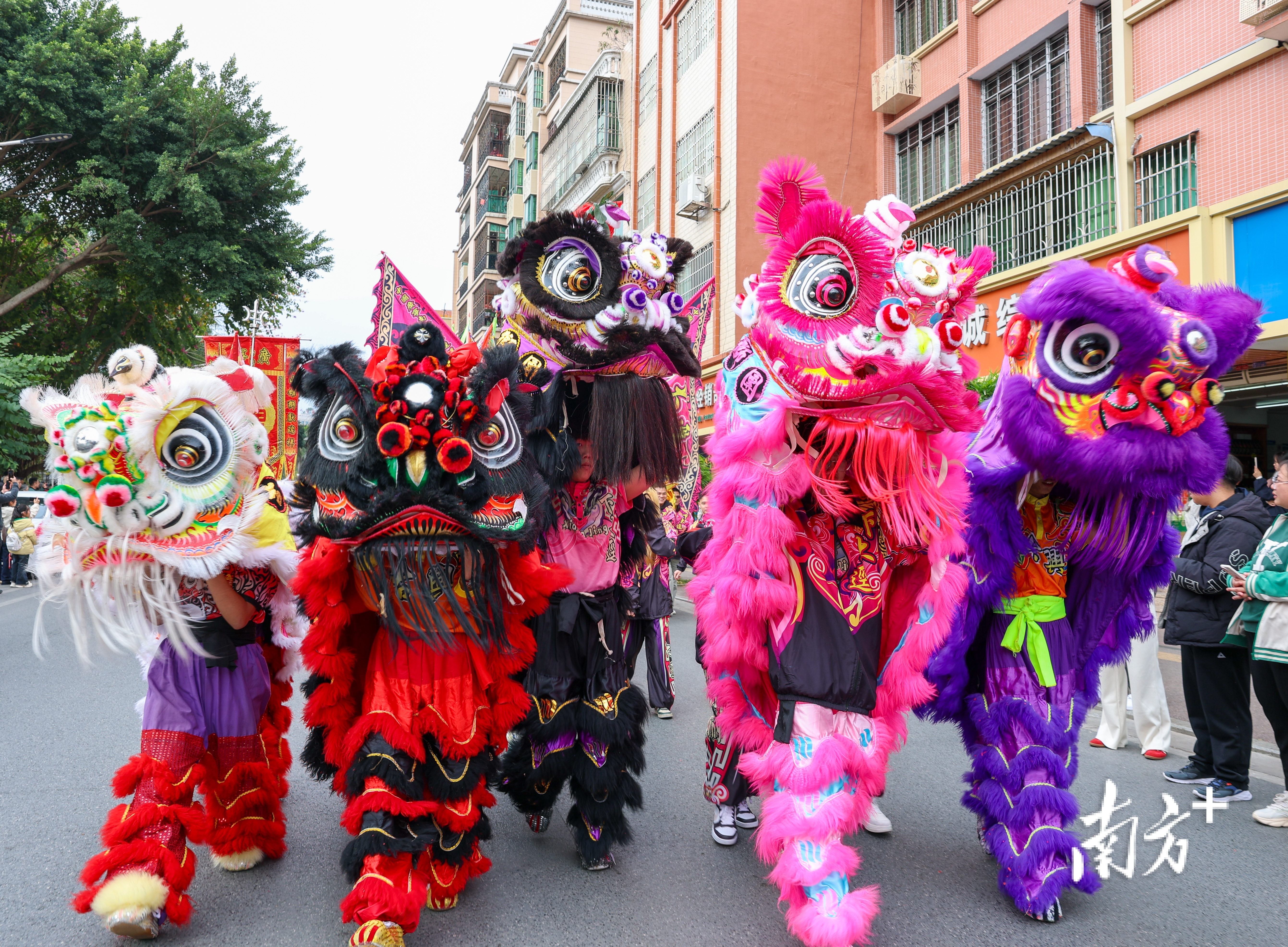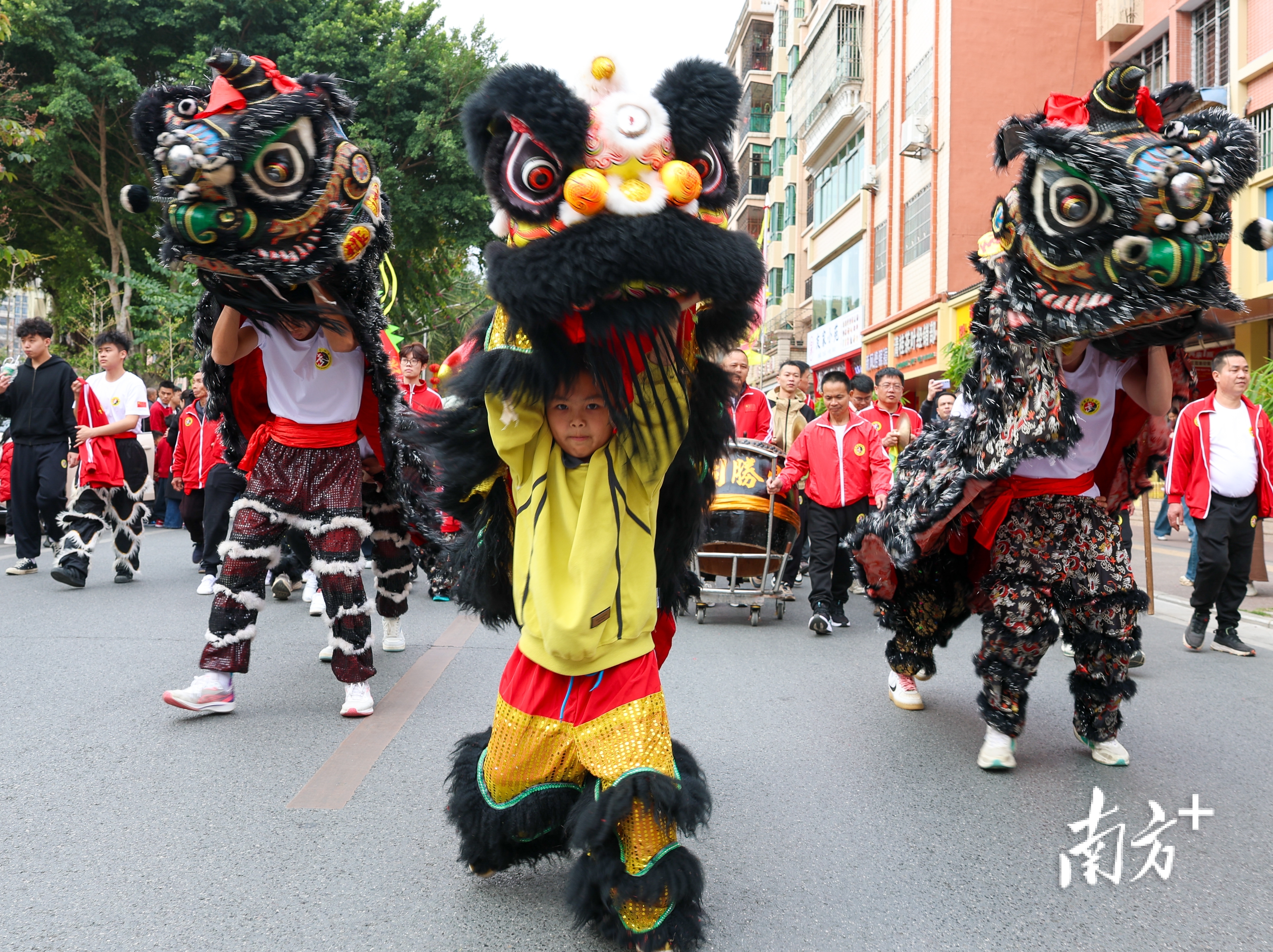 南狮队伍威风凛凛。 南方+ 施亮 拍摄