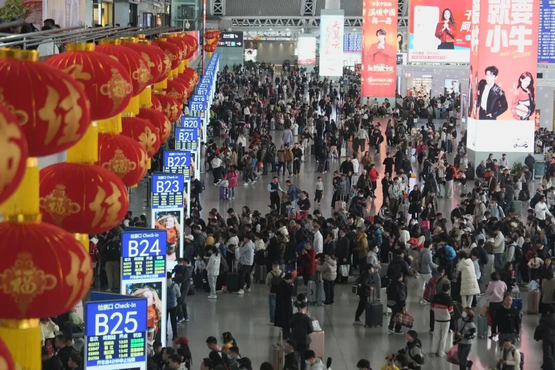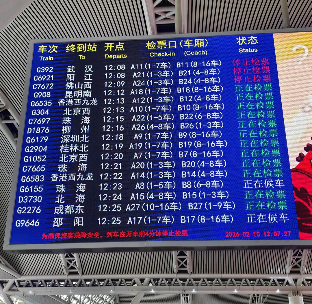 走进广州南站的候车大厅,电子屏上密密麻麻的等待出发的高铁班次蔚为壮观。2026年春运期间,这里预计到发旅客超2000万人次,日均到发超53万人次。有网友调侃道:“在这里错过一班车,下一班可能早就满员了,改签的难度堪比抢春运首日票。”也有网友直言:“一天要送走两千多趟车,广州南是真的‘火力全开’。”12306早就给大家划好了重点:千万记得提前40分钟到站。要知道,春运期间的安检队伍,可是一道别样的风景线。