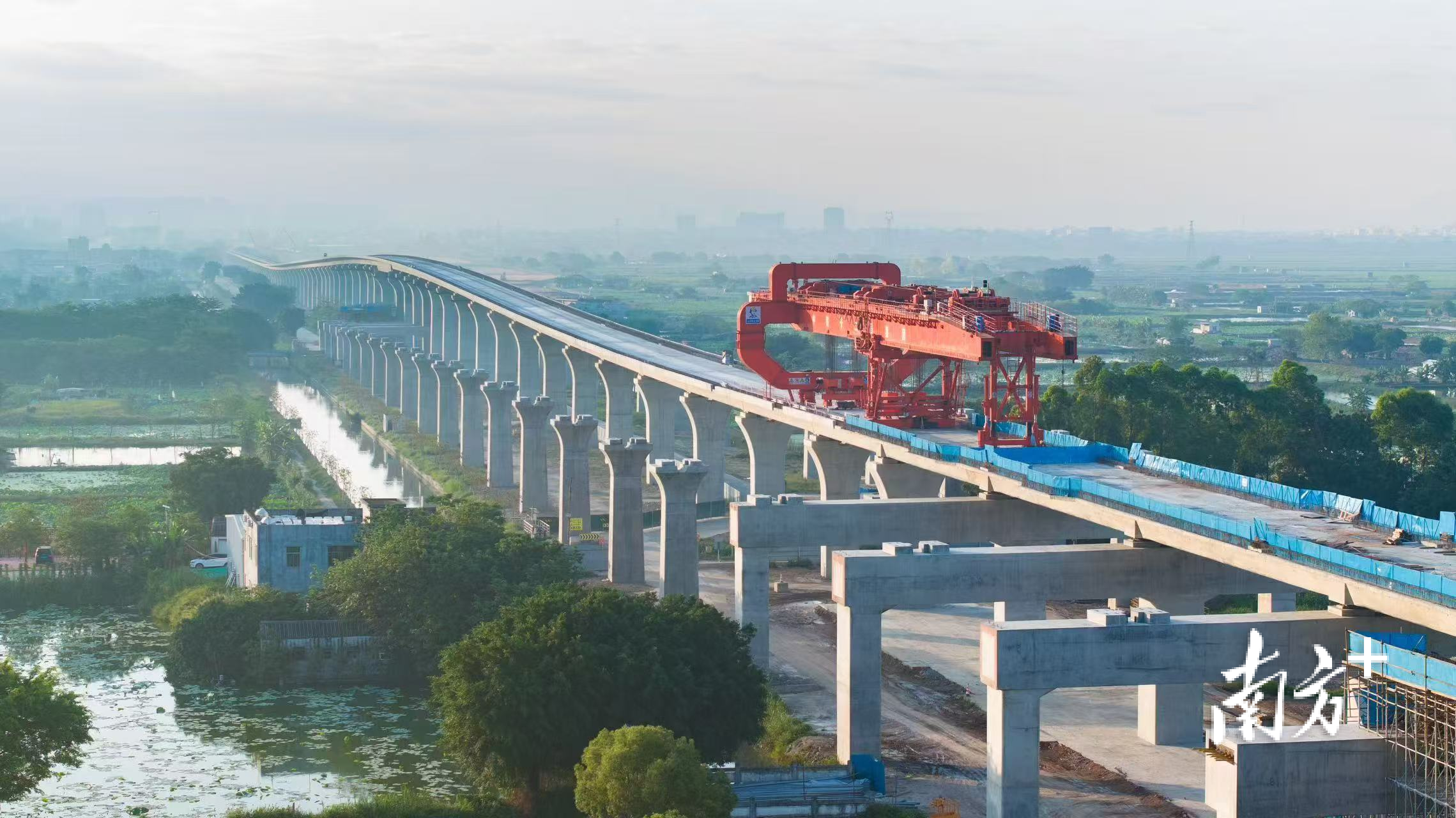 日前,省重点交通项目——粤东城际铁路完成7标二工区管段范围内的全部箱梁架设任务,为后续桥面系施工及电气化工程全面展开创造了坚实基础,也为粤东城际铁路早日实现全线贯通迈出了坚实一步。