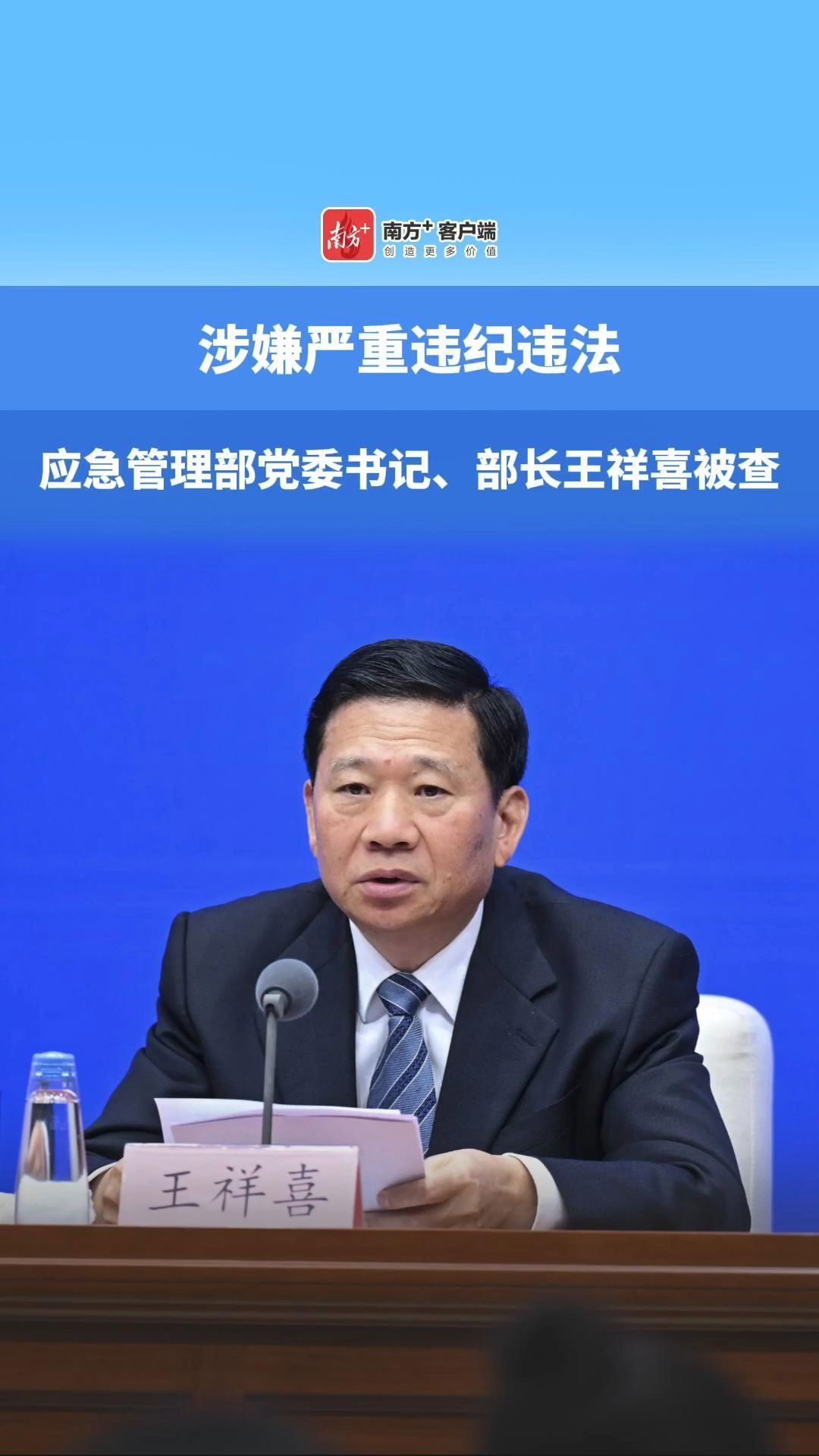 涉嫌严重违纪违法,应急管理部部长王祥喜被查
