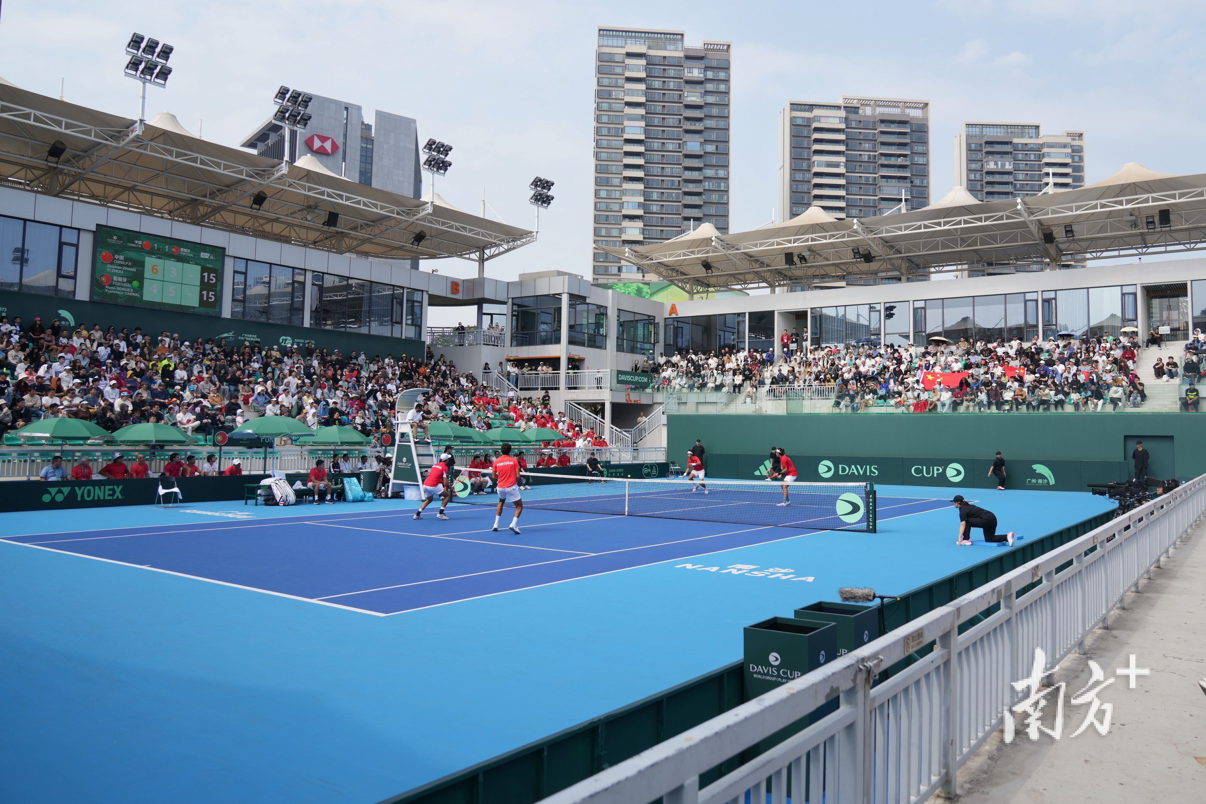 首场双打比赛中,张之臻/周意以2比1艰难击败努诺·博杰斯/弗兰西斯科·卡布拉尔。随后的单打比赛中,张之臻与努诺·博杰斯打得相当接近,张之臻两盘都在最后关键时刻完成破发,从而以2比0赢得胜利。张之臻的漂亮发挥帮助中国队提前结束了比赛,更让南沙的现场气氛达到了顶点。