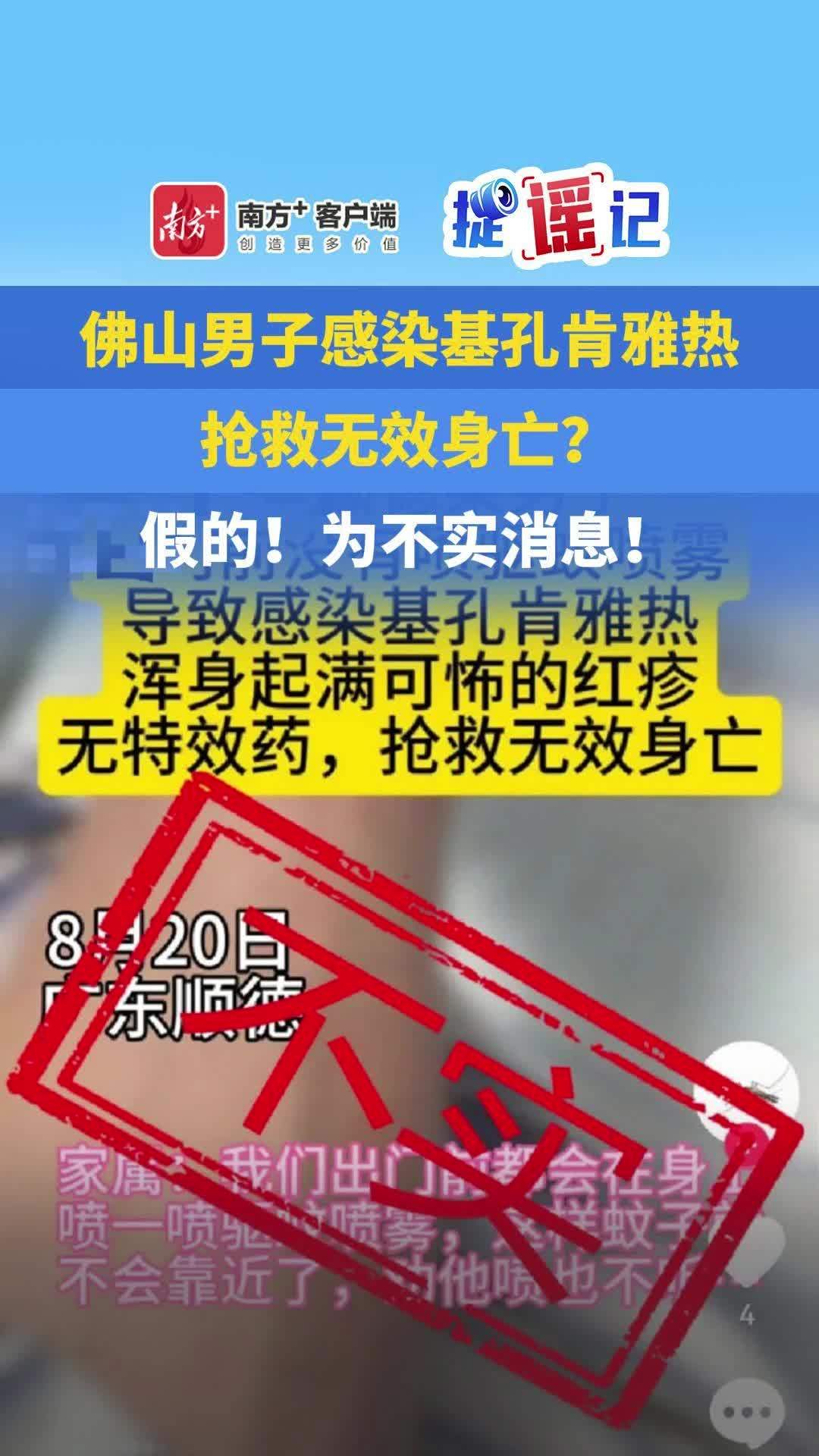 佛山男子感染基孔肯雅热抢救无效身亡?假的!为不实消息!