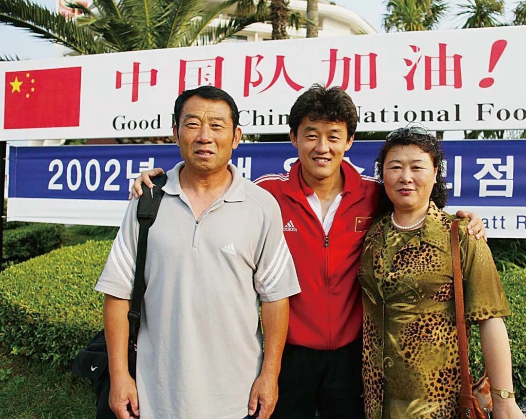 ▲2002年韩日世界杯,孙继海和父母在韩国西归浦市驻地合影 图/受访者提供